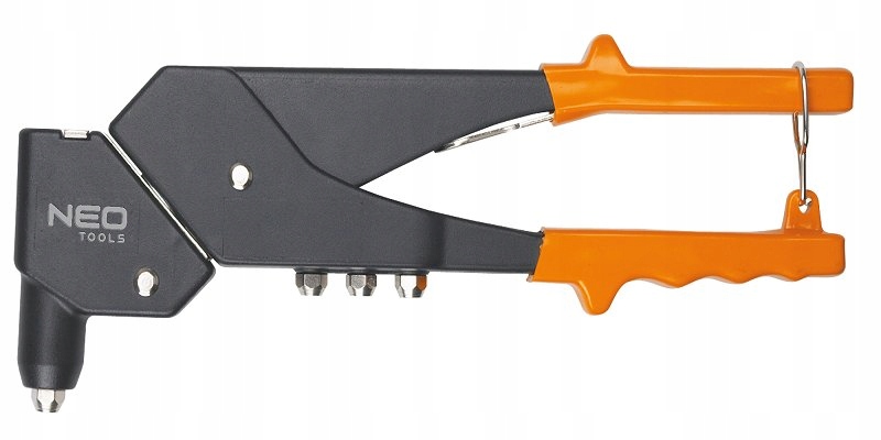 Заклепувальник NEO для сталевих та алюмінієвих заклепок діаметром 2,4, 3,2, 4,0, 4,8 мм. Головка може повертатися на 360°, що дозволяє клепати у важкодоступних місцях під будь-яким кутом. Алюмінієва головка та корпус, міцна сталева верхня ручка та елементи конструкції із загартованої сталі гарантують довговічність інструменту. Зручні ручки з фіксуючим кільцем для зручного зберігання. Сертифікат TÜV Rheinland гарантує високу якість і надійність продукції. Торгова марка NEO відповідає очікуванням професіоналів.