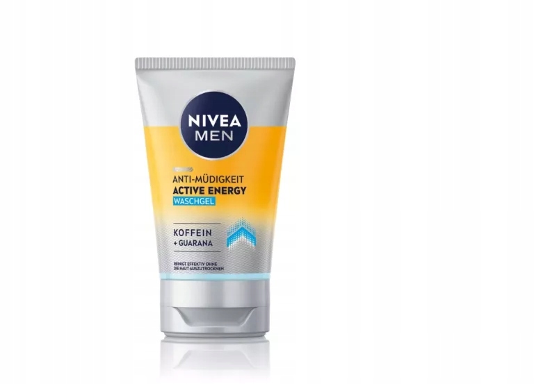 NIVEA MEN ACTIVE ENERGY Енергетичний гель для вмивання обличчя з кофеїном зі 100% натурального джерела. Призначений для щоденного догляду та ефективно видаляє забруднення та надлишки шкірного сала, не пересушуючи шкіру. Він не тільки ретельно очищає обличчя, а й пом'якшує бороду, полегшуючи гоління. Гель додає шкірі енергії та надає їй здоровий вигляд. Ваше обличчя виглядає здоровим і доглянутим. Також спробуйте іншу косметику для чоловіків з лінії NIVEA Men Active Energy. Формула не містить мікропластику відповідно до визначення ЮНЕП. Для виробництва цього продукту 100% електроенергії було отримано з відновлюваних джерел у виробничих центрах.