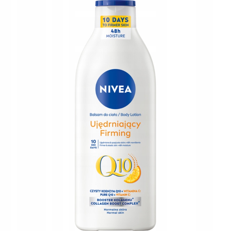 Зміцнюючий бальзам для тіла NIVEA® Q10 збагачений двома сильними антиоксидантами – коензимом Q10 і вітаміном С. Покращена формула помітно зміцнює та покращує еластичність шкіри вже через 10 днів додаток! Швидко вбирається лосьйон для тіла інтенсивно зволожує шкіру протягом 48 годин. Як отримати найкращий зміцнюючий ефект?