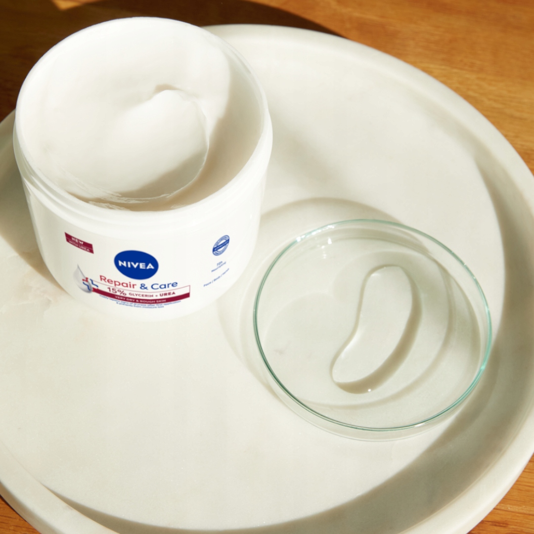 У нас є рішення для вас: крем для ремонту та догляду за сечовиною. Делікатна, але сильна формула з 15% гліцерином і сечовиною глибоко зволожує і живить шкіру, відновлюючи видимі ознаки сухість і залишаючи відчуття м'якості від першого використання. Як сильний зволожуючий крем, сечовина також запобігає подальшій втраті вологи і підтримує шкіру добре зволоженою до 72 годин. Відчуйте зіпсоване завдяки ремонту Nivea Repair & Care Cream. Насолоджуйтесь гладкою, здоровою шкірою, яка випромінює життєву силу. Продукт зробить вашу турботу задоволенням!