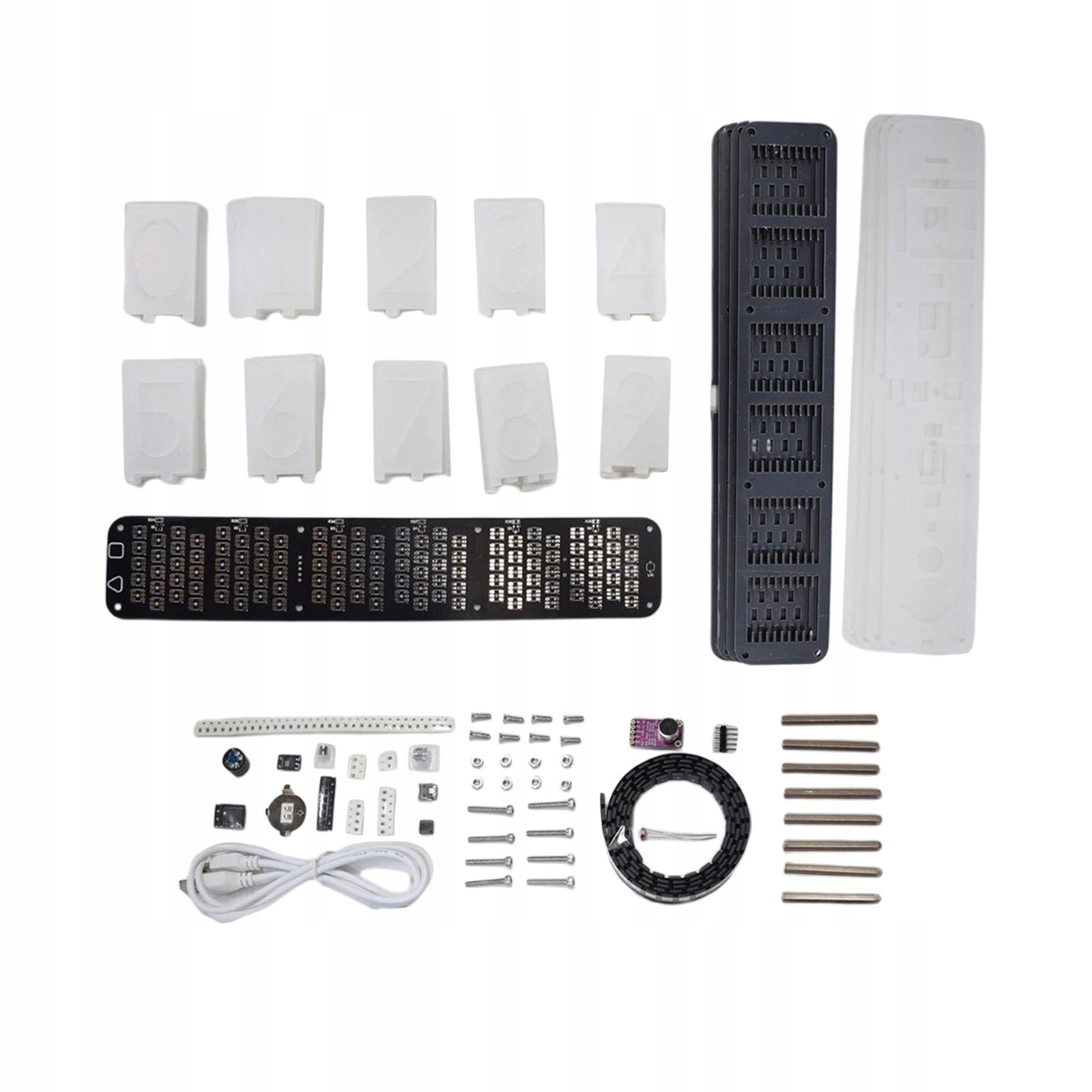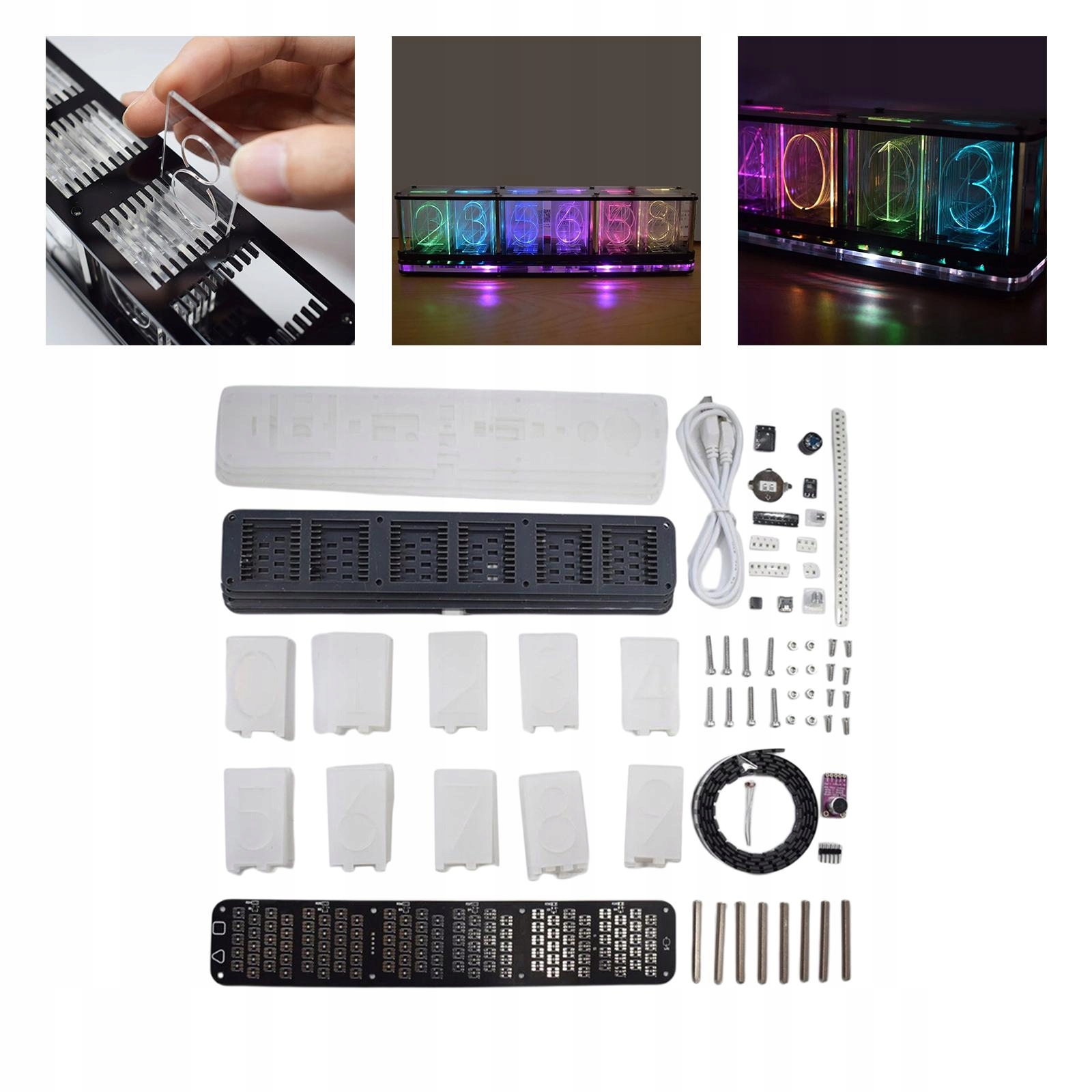 Різні цифри вигравірувані на прозорому акрилі, потім цифра заломлюється яскравою лампою RGB, яка імітує відображення флуоресцентного годинника.
