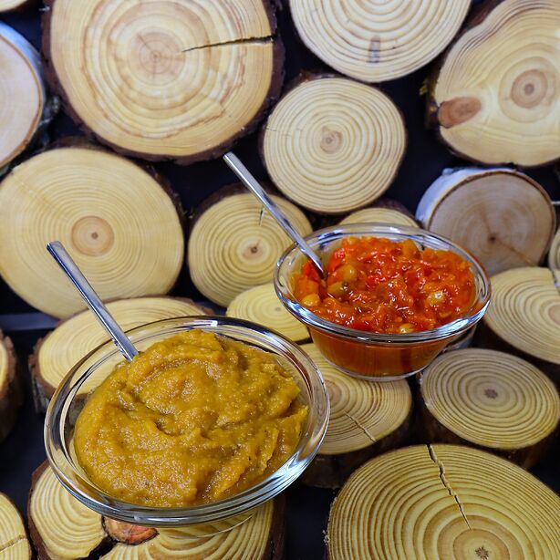 гострого овочевого салату з перцем, баклажанами з цукіні, цибулею та морквою. Для виробництва використовуються лише натуральні інгредієнти. Без консервантів та барвників.