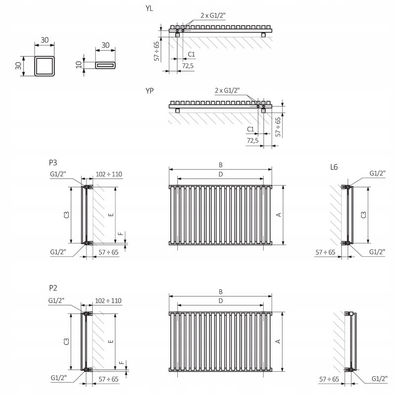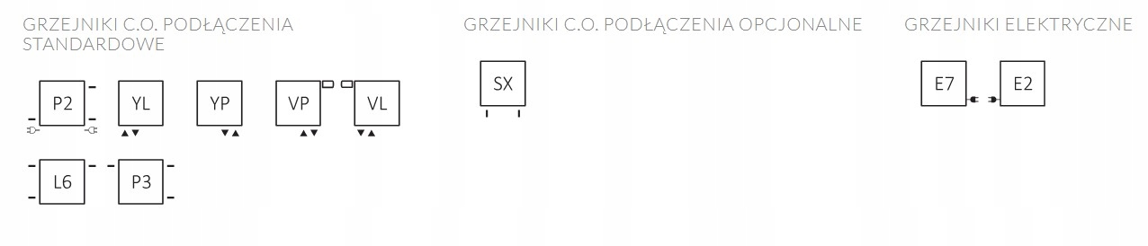 - можуть бути виконані з комбінованим нижнім підводом (50 мм) і вентильною вставкою в радіатор - типи підводу на вибір нижче