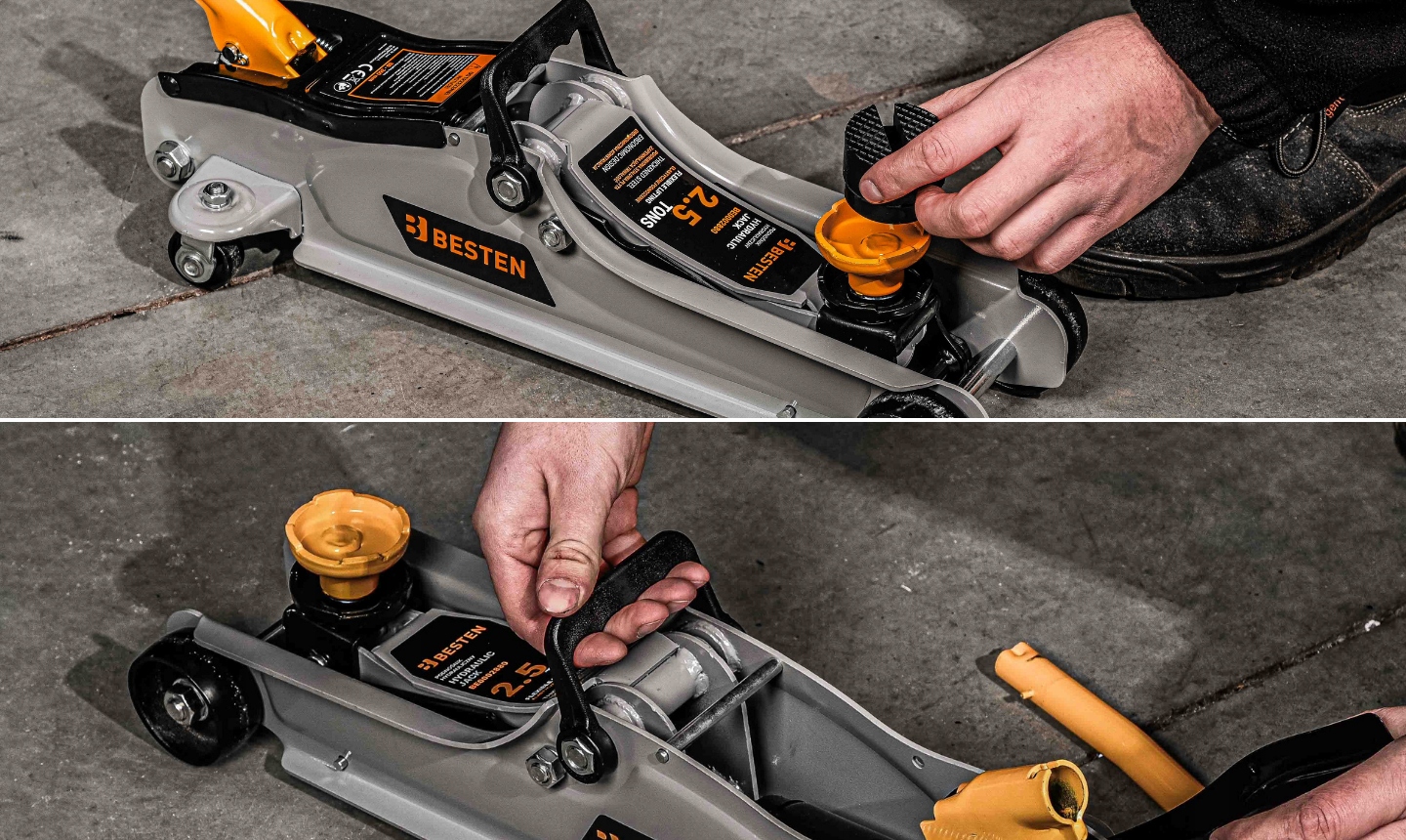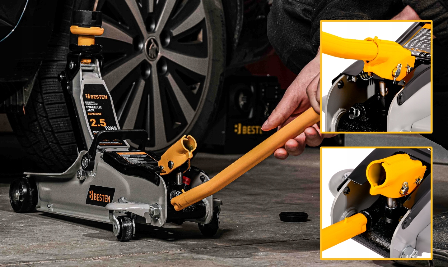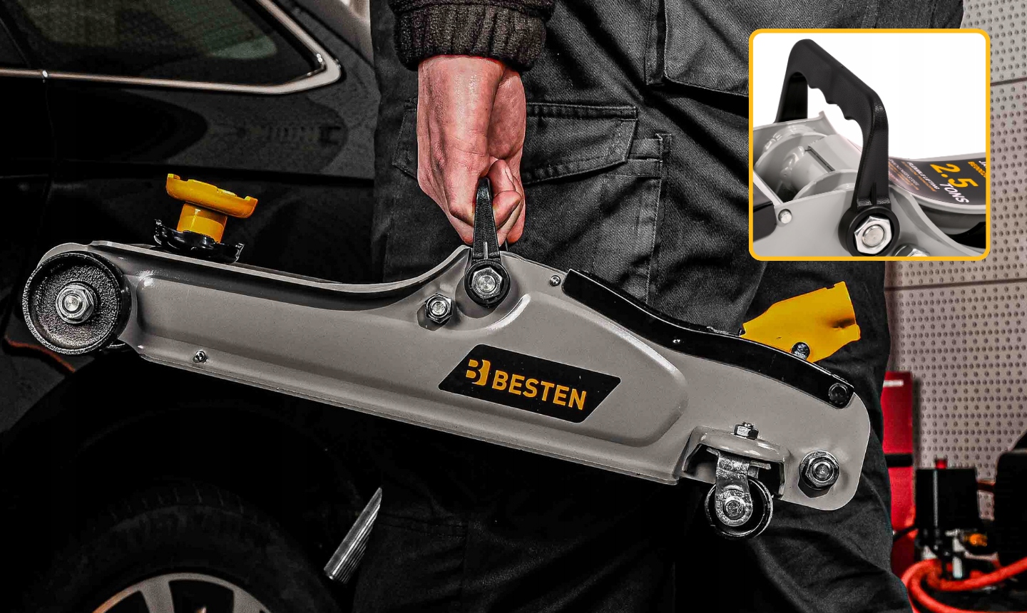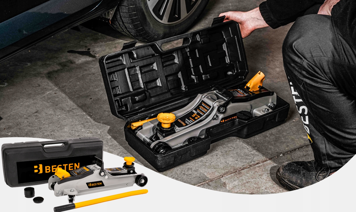 Домкрат BESTEN 2.5T дозволяє безпечно виконувати більшість робіт на автомобілі - як в гаражі, так і в дорозі: