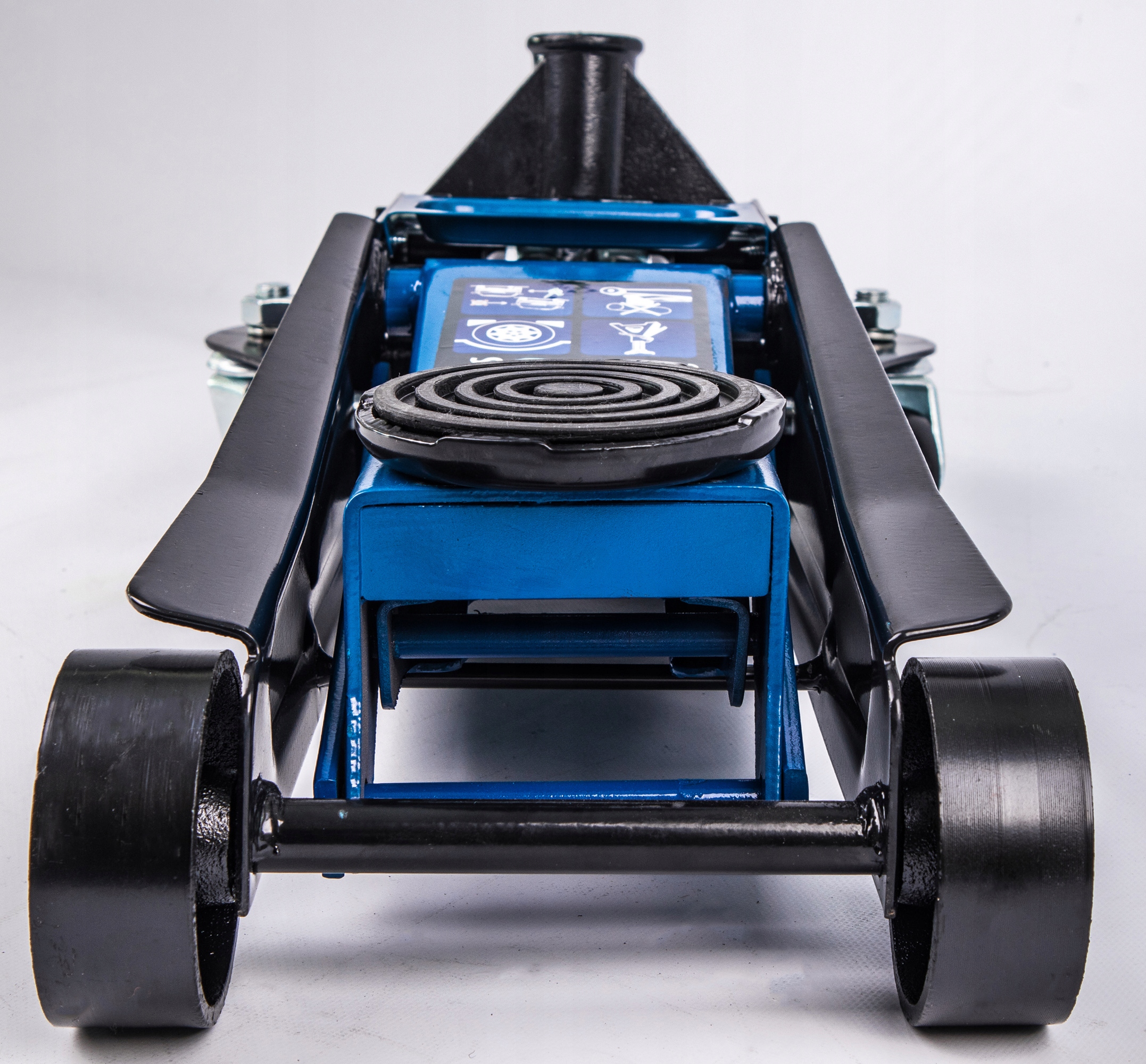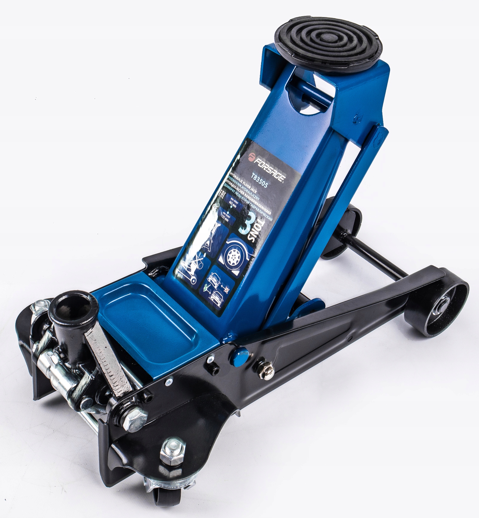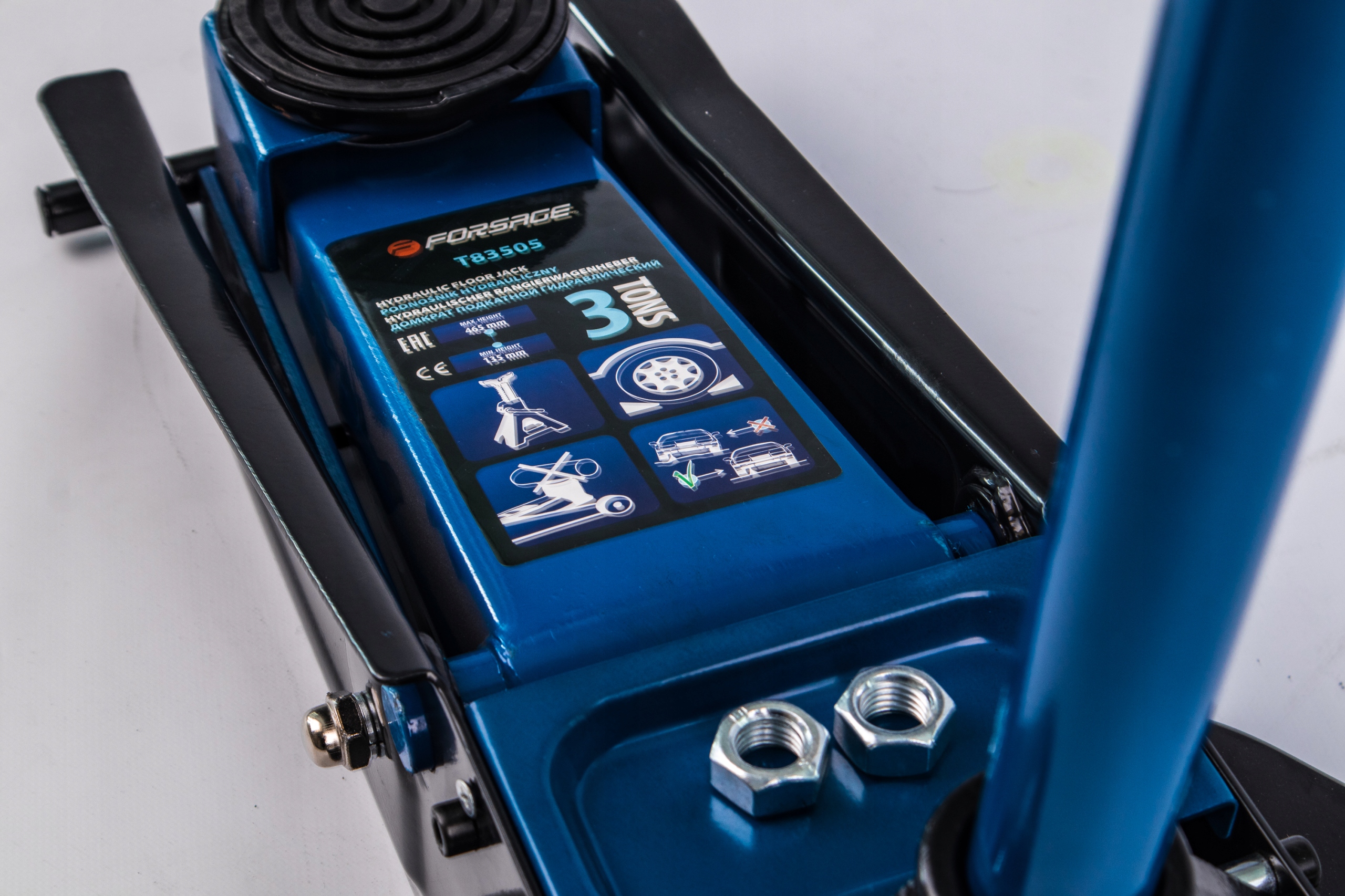Надійний домкрат оснащений гідравлічним блоком із двома поршнями, завдяки якому він здатний швидко та легко піднімати транспортні засоби та предмети максимальною масою 3000 кг. Пристрій стане незамінним елементом в гаражі кожного механіка, адже підйомник дозволить: