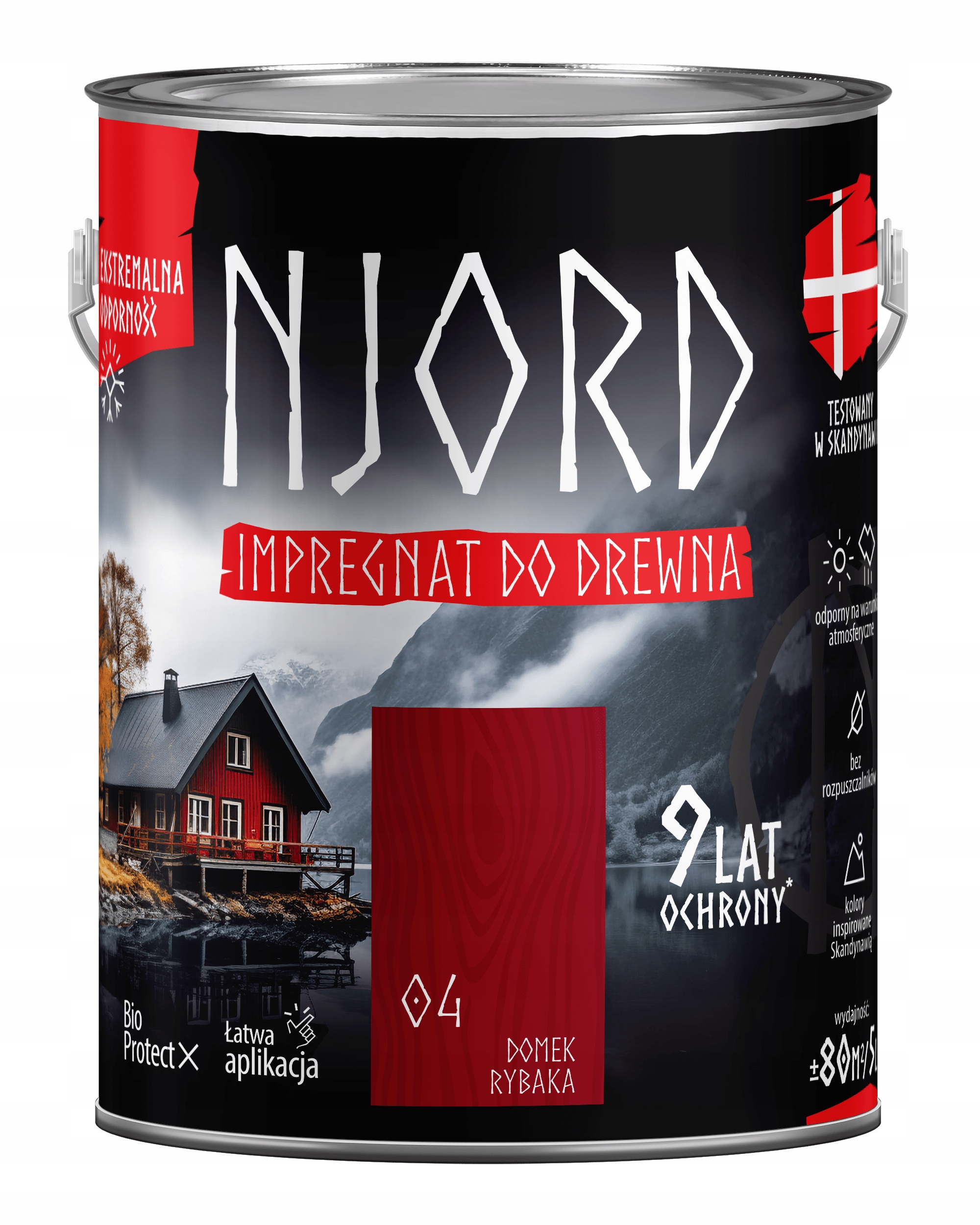 Njord Wood impregnation – надзвичайно стійке просочення, призначене для захисного та декоративного фарбування дерев’яних поверхонь як на відкритому повітрі, напр. фасадів, навісів, альтанок, огорож, а також для внутрішніх об'єктів, напр. меблі, вагонка. Продукт НЕ призначений для плоских поверхонь, таких як підлоги, тераси, дахи (гонт). Просочення створює дуже міцне та еластичне покриття, стійке до погодних умов, цвілі та вологи. Має гідрофобні властивості. Характеризується хорошою покриваністю, підкреслюючи зернистість і надаючи сатиновий фініш.
