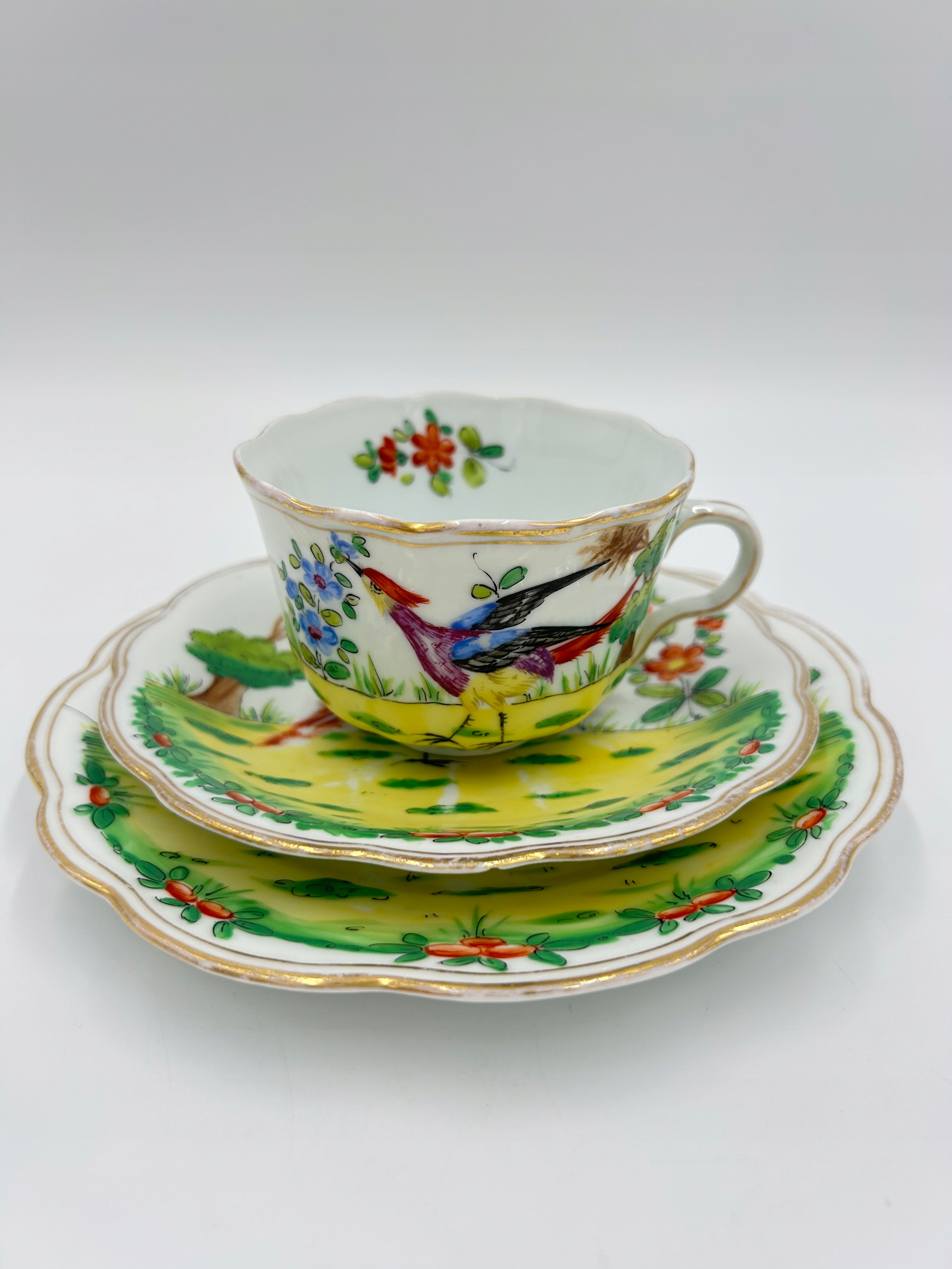 Тема продажу - це прекрасне, унікальне тріо - чарівна чашка з блюдцею та тарілкою. Зроблено з великою увагою до підтримки деталей, зроблених з делікатного порцеляни найвищої якості, зафарбованої в руку. Барвисті прикраси, насичені кольори - незважаючи на час, що проходить, позолочені краї. Унікальний декоративний елемент для людей, які цінують елегантність та гармонію. Копія цінного колектора.