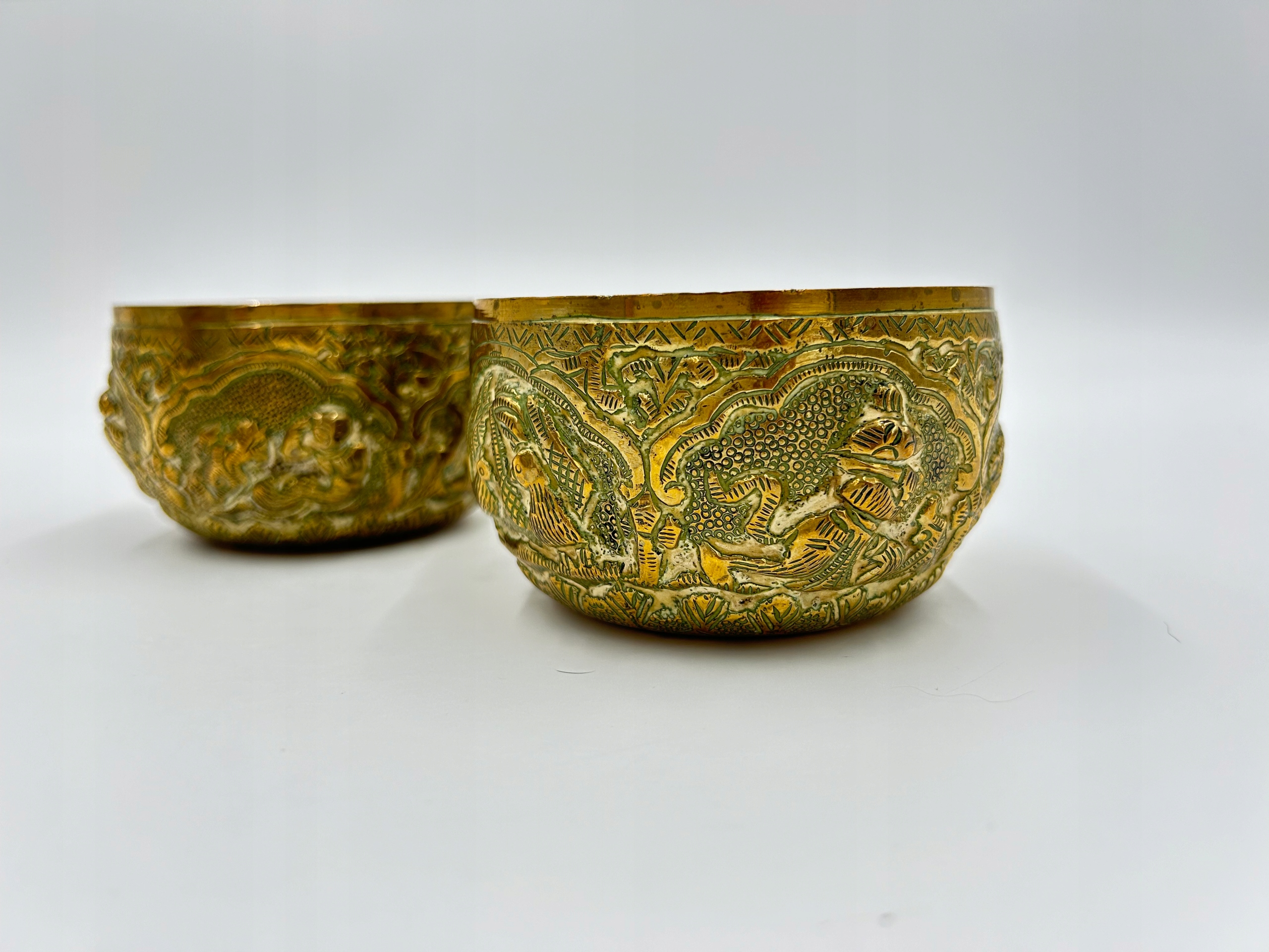 Тема продажу - це декоративні чашки з латуні. Ціна на 2 предмети, видимі на фотографії.