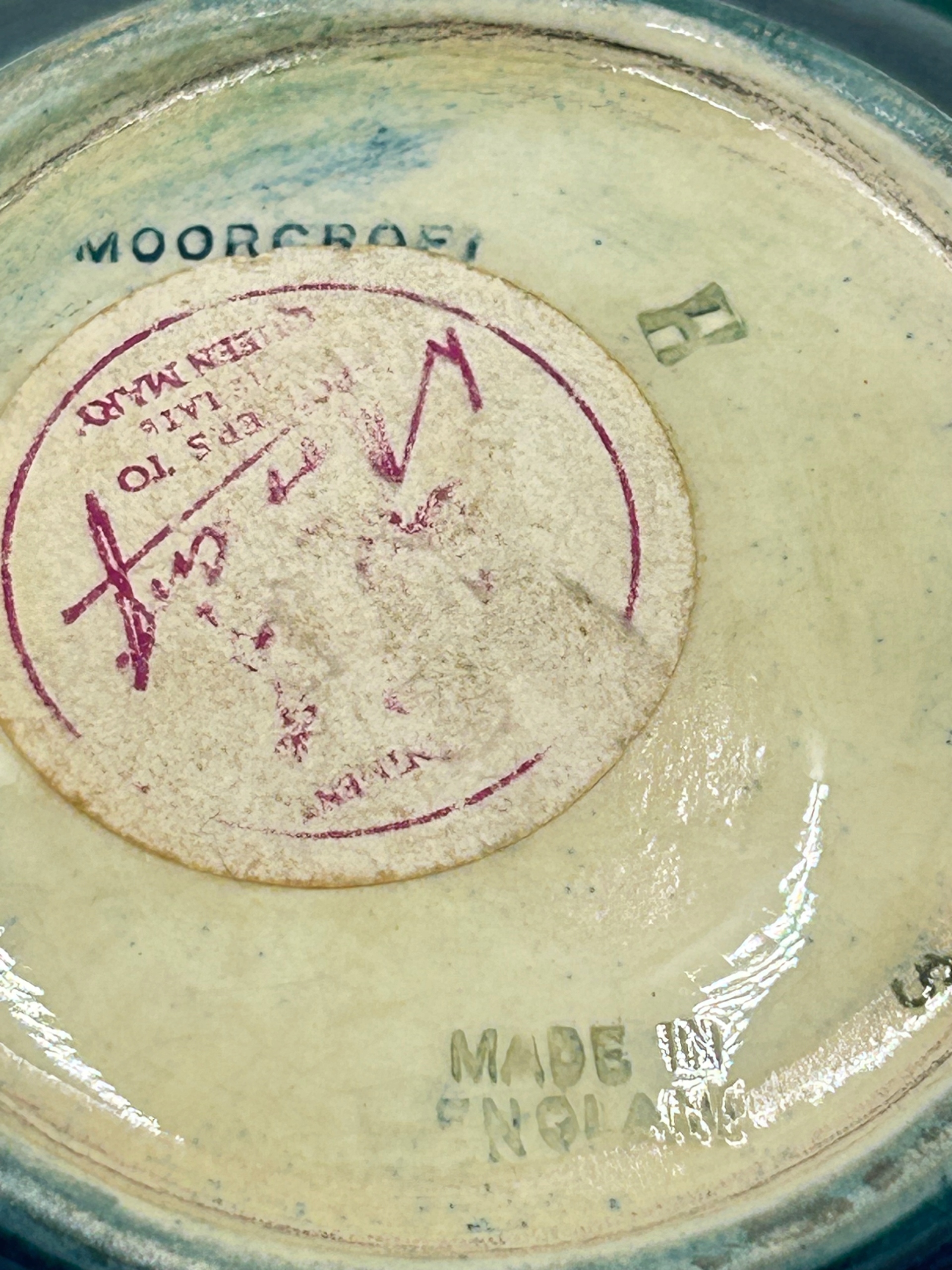 Позначка "MOORCROFT"і тиснення "Made in England" підтверджують справжність продукту.