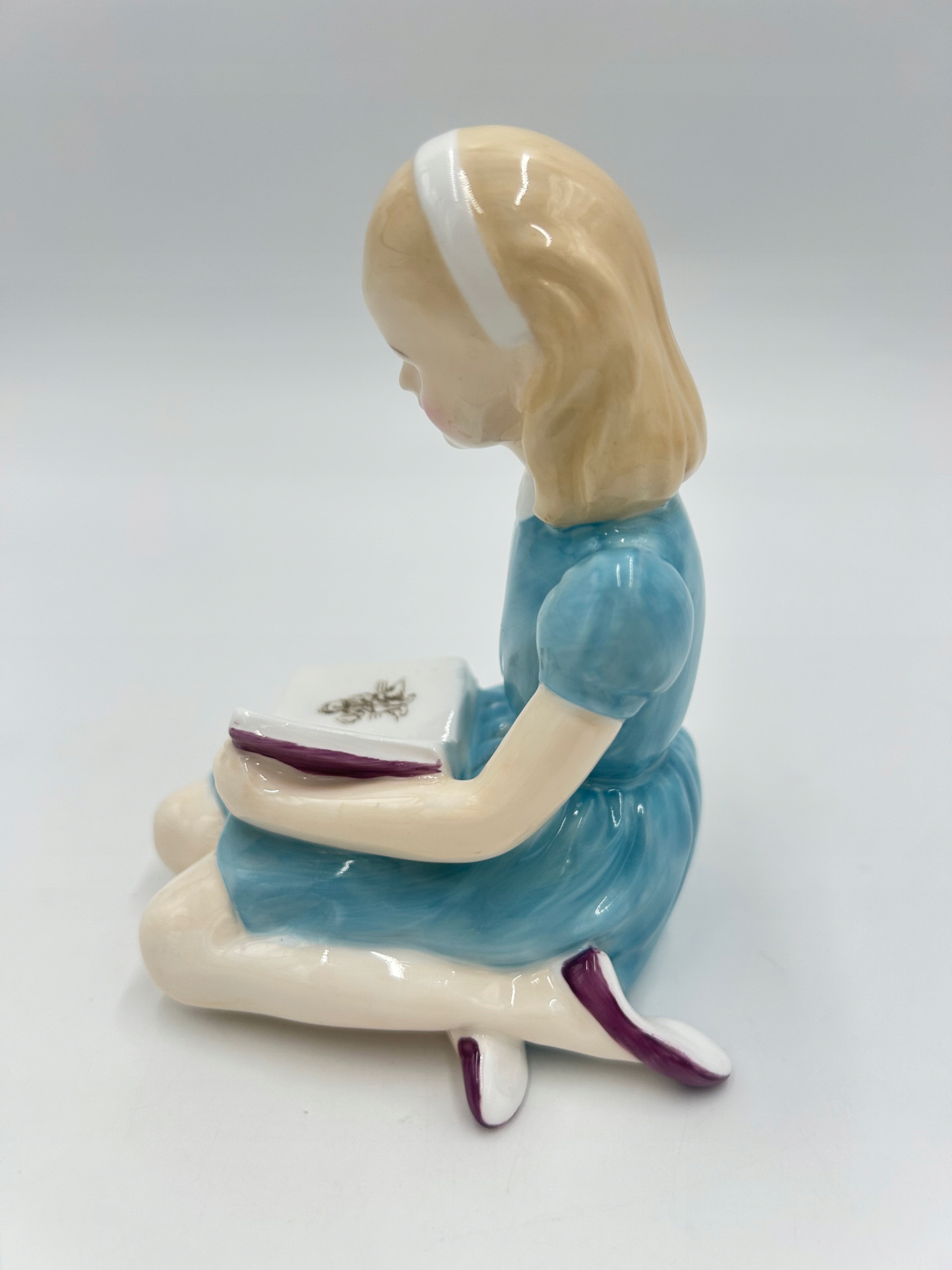 Елегантна порцелянова статуетка з ручним розписом від відомого англійського бренду Royal Doulton. На ньому зображена дівчина в блакитній сукні з книгою на колінах.