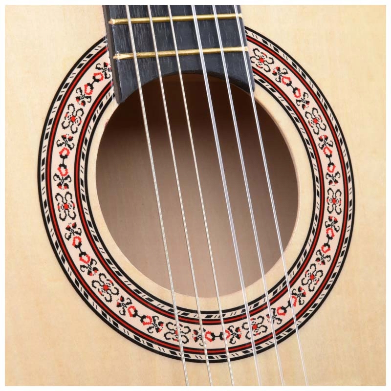 BD 36 — ✅ чудова гітара для початківців. Інструмент виготовлений з порід дерева з хорошими акустичними властивостями, що робить звук гітари дуже приємним. Зручний гриф і відносно низький хід м'яких нейлонових струн дозволяють досить легко і природно розташувати пальці на ладах, ✅ не втомлюючи руку. Також варто звернути увагу на елегантну розетку розміщені навколо звукового отвору, а такожкласичні, чудово прикрашені заводні механізмиз перламутровими метеликами.