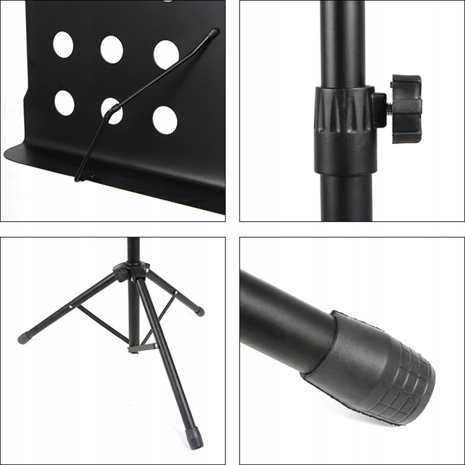 nn d5 - це дуже солідні, професійні нотатки для нот із обкладинкою. Ця музична підставка повністю виготовлена з легкого алюмінію та міцного пластику, що з'єднує окремі елементи. TRIPOD має двотокове регулювання висоти в діапазоні від 70 до 120 см, що дозволяє зручно читати тексти пісень або музичних вечірок, як сидячи, так і стоячи. Спеціальні, пружинні тичинки Натисніть текстовий матеріал або бал, з яким ми працюємо до робочого столу. Завдяки цьому вміст не впаде навіть під час випадкового відрахування, і їхній вітер не буде довіряти відкритих сценах. Кут робочого столу відносно користувача регулюється, а його глибина дозволяє встановити навіть товсту палітурку, що робить його чудовим штативом для текстів для весільної смуги або солістів. Відносно широка тринога база, закінчена гумовими накладками, робить всю підставку дуже стабільною. Після складання він займає невелике місце, а транспортний мішок, прикріплений до набору від водонепроникної кодури, дозволяє своєму зручному транспорту. Це повністю професійний, але відносно дешевий робочий стіл для нот і текстів