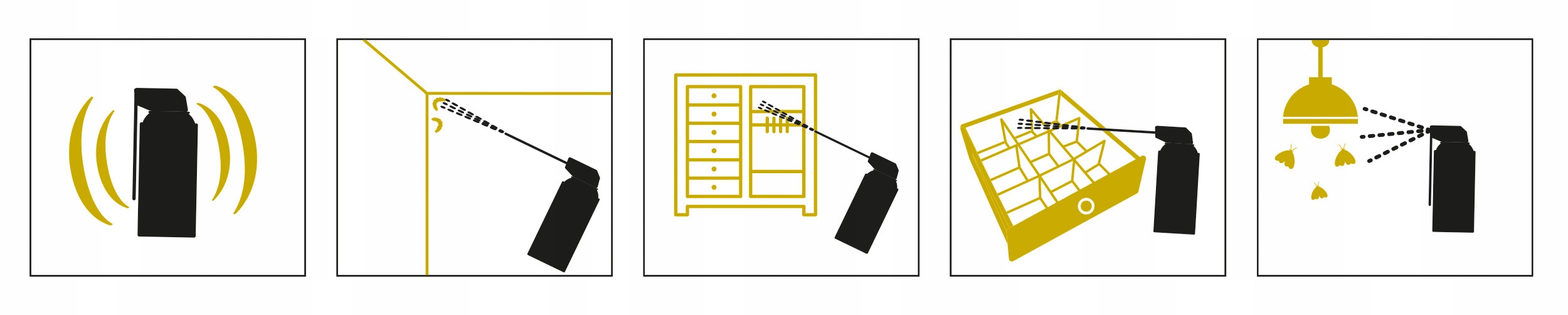 - Розпиліть поверхню з відстані приблизно 30 см у місцях скупчення та гніздування комах (зверніть особливу увагу на важкодоступні місця, такі як щілини, щілини, навколо труб центрального опалення, водопроводу тощо).