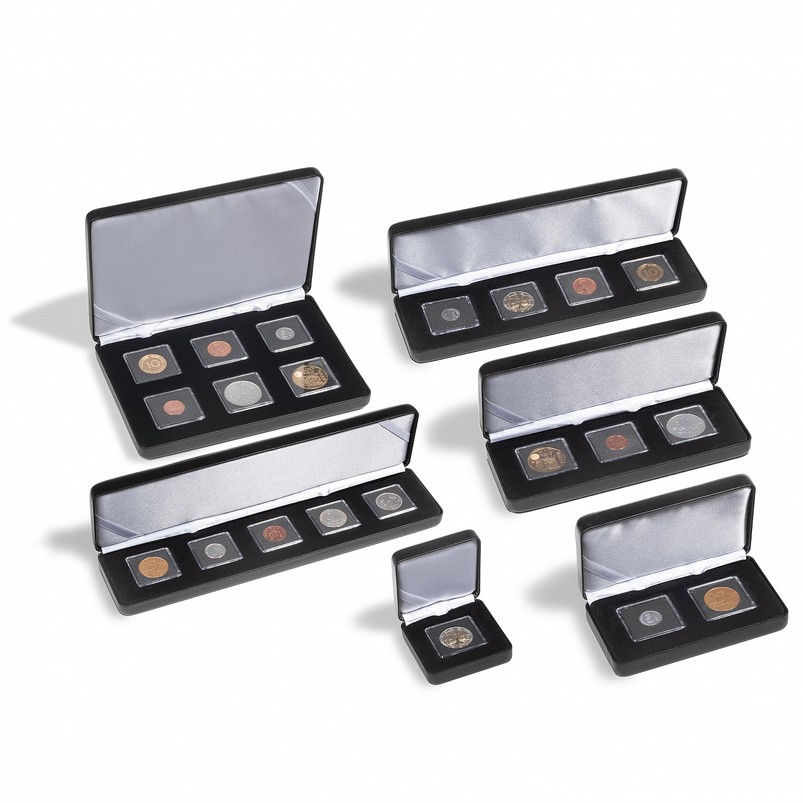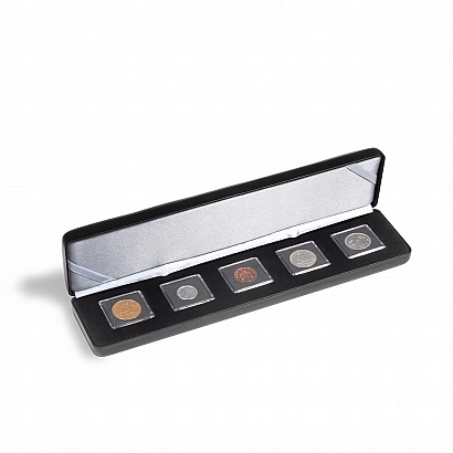 Кейс призначений для показового зберігання 5 монет в капсулах Quadrum.