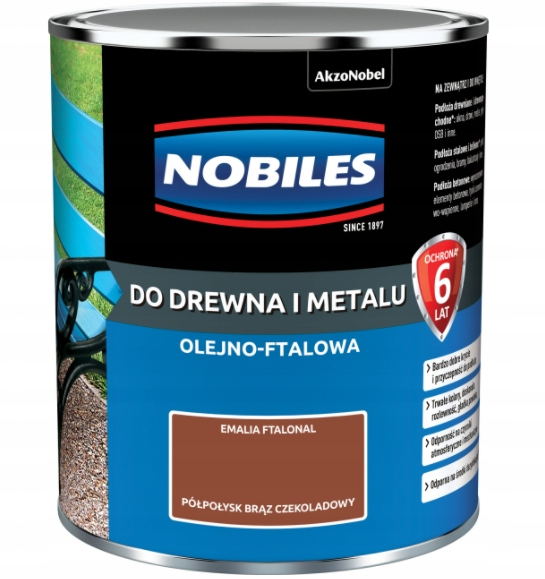 Фальтональна деревина та метал - це поверхнева алкідна фарба, що дає покриття, що характеризується хорошою адгезією до землі, гнучкості та хорошої стійкості до погодних умов. Nobiles Faltalonal-це фарба для захисного та декоративного живопису поверхонь: сталь, чавун, дерево, бетонні та цементні лайми, раніше покриті праймерами або антикорозійними фарбами. Він використовується для фарбування сталевих конструкцій, наприклад Металеві балкони, фарбування дерев'яних альт або ламелів на цементних пласторах. Його можна використовувати в об'єктах і поза ним.