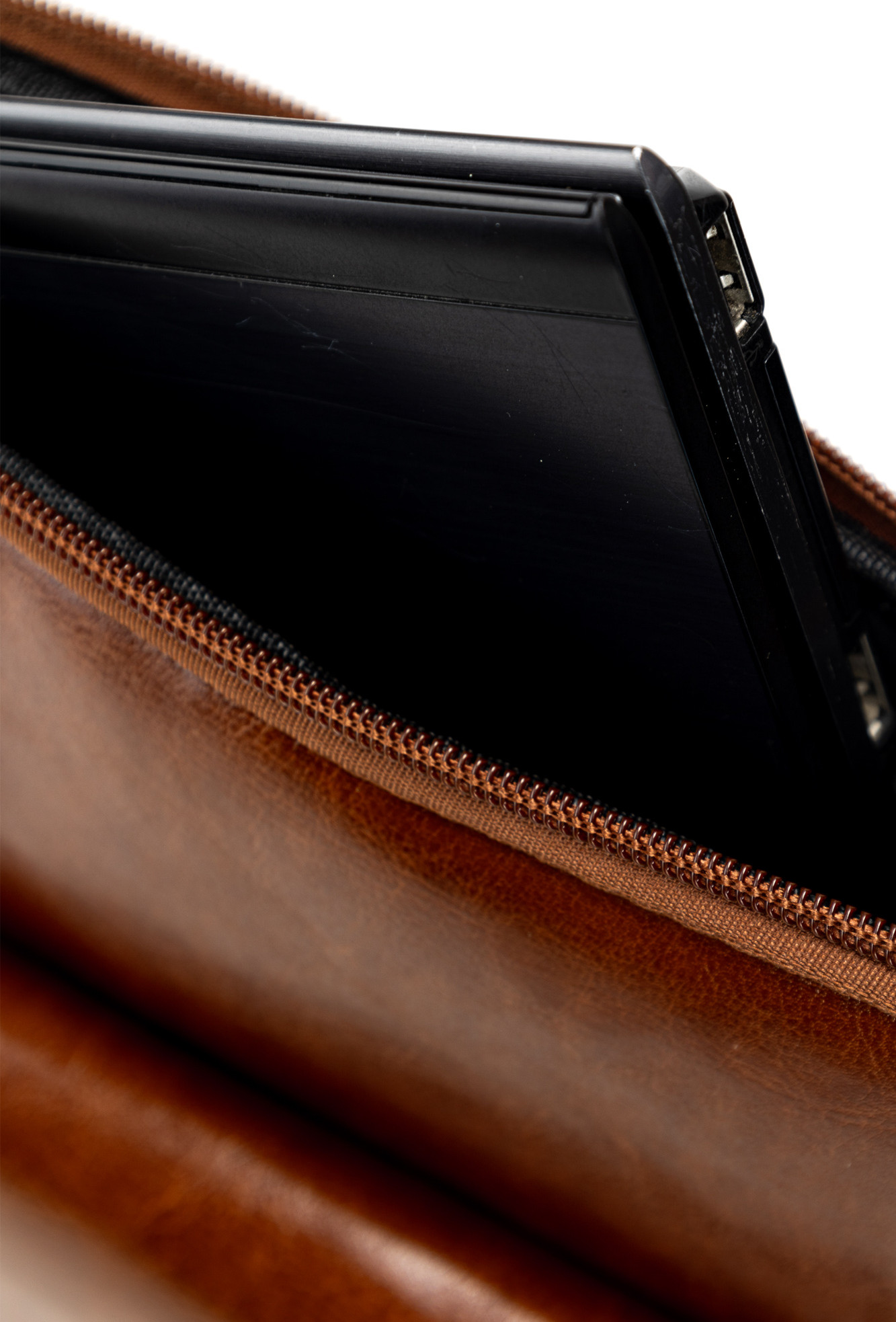 - Шкіряний портфель Nobo - це елегантне та функціональне доповнення, яке буде ідеальним як на роботі, так і під час ділових зустрічей. Сумка, виготовлена з високоякісної екології, поєднує довговічність з естетикою. Портфель NOBO був розроблений для сучасних професіоналів, яким потрібно не лише для документів, але й правильного місця для безпечного зберігання ноутбука. Портфель містить комп'ютер на 16 дюймів. У виділеній кишені посередині сумки розміщується ноутбук з максимальною діагоналі 14 дюймів. У сумці є одна ємномірна камера, яка була розроблена для розміщення всього, що вам потрібно щодня. Внутрішня частина камери ретельно організована, завдяки якому є численні кишені. Зовнішня сторона сумки оснащена практичною кишені на затискачах, розміщеній спереду, що ще більше збільшує функціональність цієї моделі. Портфель NOBO також обладнаний регульованим ременем, який дозволяє комфортно носити на плечі. Розміри: 40 см х 30 см х 4 см.