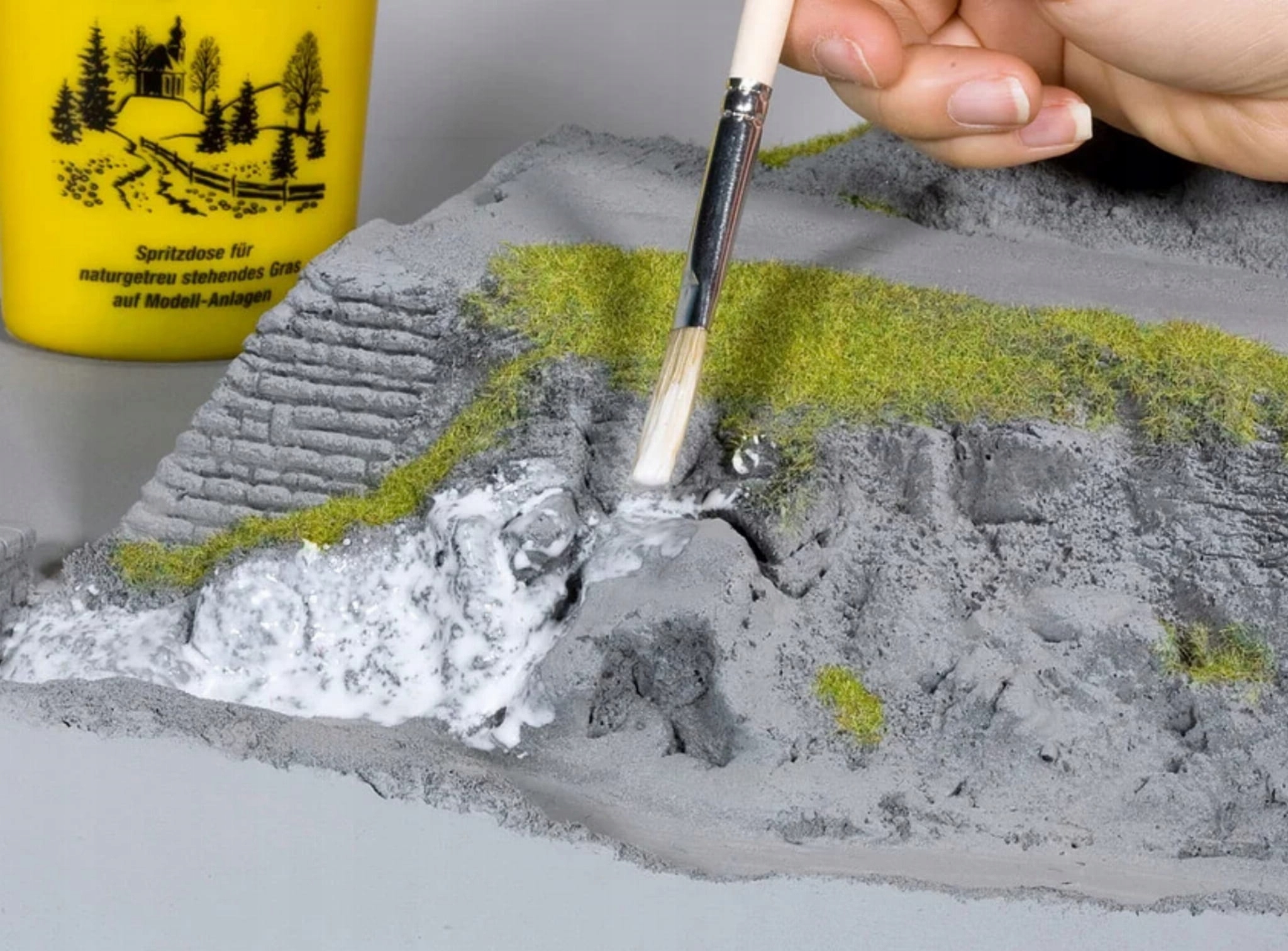 Що таке особливе в рослинних килимках? Різні трави та шматочки зграї матеріалу електростатично стікають на неадгезійному підшерстя. Завдяки спеціальному, постійно гнучкому клею, листи можуть бути без зусиль з аркуша підтримки. Потім листя кришки включаються в модельний ландшафт у цілому або частинам. Для склеювання ми рекомендуємо клей для формування ландшафту.