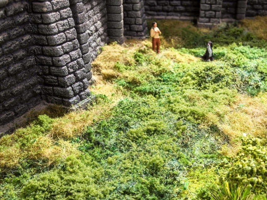 - Лугове листя - Лугове листя також електростатично флокується. Використовувалися трохи коротші волокна (3 мм) порівняно з листям дикої трави (6 мм). Завдяки цьому Meadow Foliage можна використовувати скрізь, де людина заважає природному росту рослин. Прикладами є луки, пасовища та сільськогосподарські угіддя.
