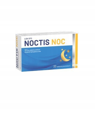 Noctis Night - це лікарський продукт, що містить як діючу речовину - Доксії. Він належить до групи антигістамінів. Цей препарат характеризується заспокійливим ефектом, а це означає, що він має ефективність як засіб, який полегшує засинання. Продукт, призначений для дорослих.
