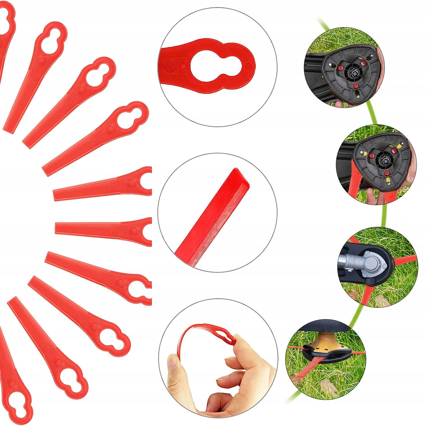 - Пластиковий газон Ножі косарки виготовлені з високоякісного матеріалу ABS, міцного та м’якого, гнучкого та зносостійкого.