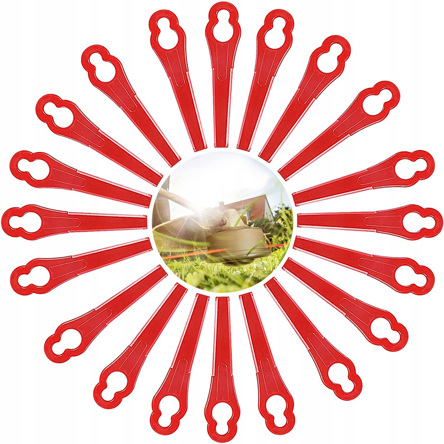 - Наші пластикові ножі для газонокосарки міцні та не ламаються під час зрізання дерев або перешкод, таких як каміння та гілки