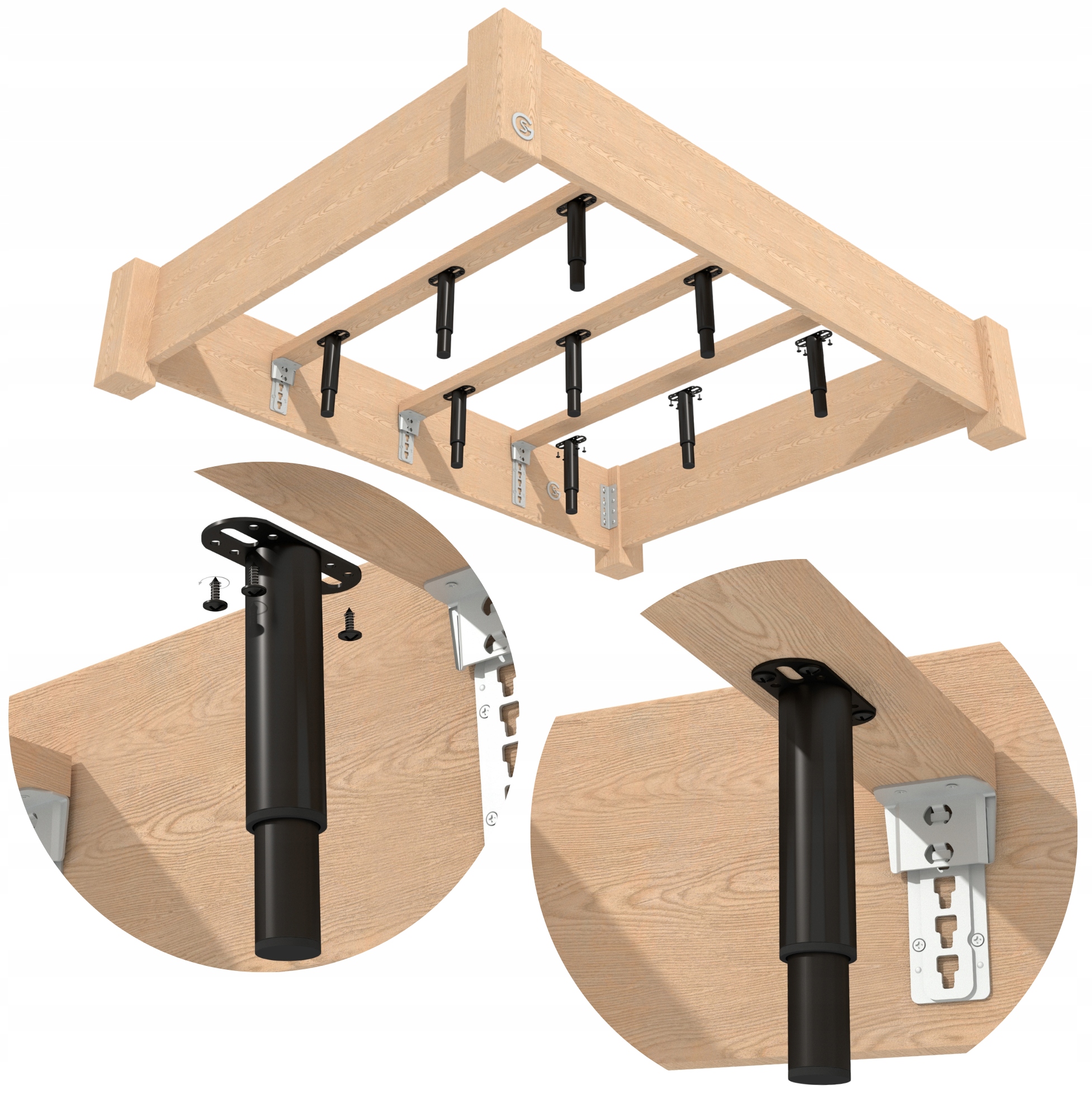 NOGA NÓŻKA 18 - 32 CM STALOWA REGULOWANA Z BLACHĄ MONTAŻOWĄ DO ŁÓŻKA CZARNA