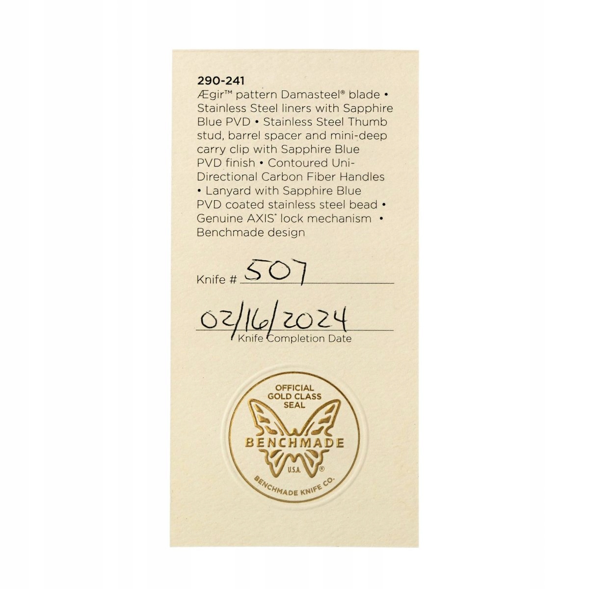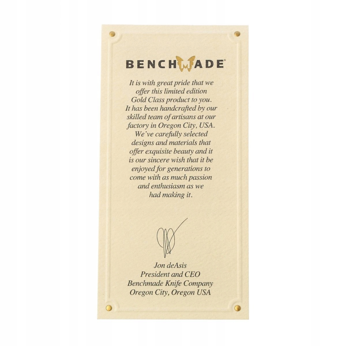 - належить до обмеженого видання із Золотого класу ножів Benchmade