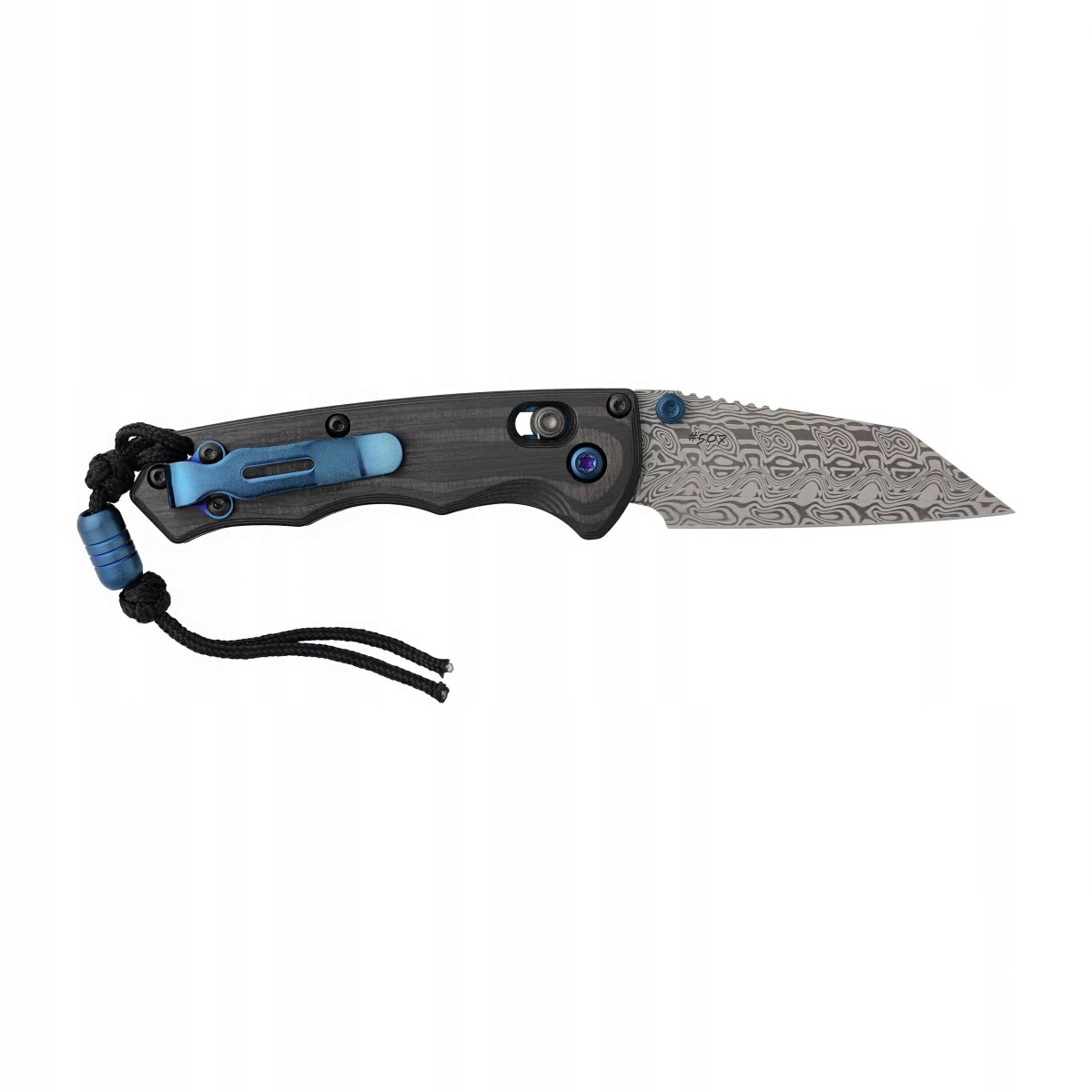 Лезо, виготовлене з дамаської сталі та акценти в кольорі сапфірового синього, надає унікальному та оригінальному вигляду цього ножа.