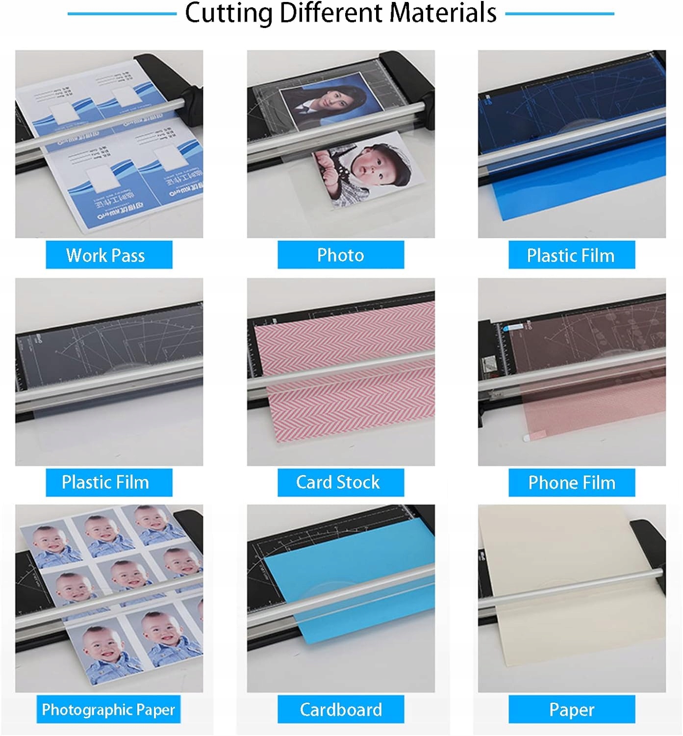 Точне різання На паперовій гільйотині надруковані таблиці вимірювання кутів від 45 градусів до 90 градусів і сантиметрова шкала, яка допоможе вам відрізати потрібний кут і довжину. Підходить для шкільних будинків та офісів. Професійний інструмент для прямого різання гільйотини оснащений направляючими лініями, а лезо гостре та акуратне. Це незамінний інструмент для любителів рукоділля. Безпечна конструкція Лезо можна використовувати лише в натиснутому стані, що повністю захищає безпеку користувачів, особливо дітей, і батьки можуть взяти своїх дітей на рукоділля. Конструкція проти ковзання У нижній частині різака для паперу є 6 протиковзких круглих губчастих подушечок, які можуть запобігти ковзанню різака під час різання та підвищити точність різання. Область застосування призначена для різання паперу формату А2 А3 А4, фотографій, карток, наклейок, картону до 12 мм, етикеток, картону, зображень, ламінату.