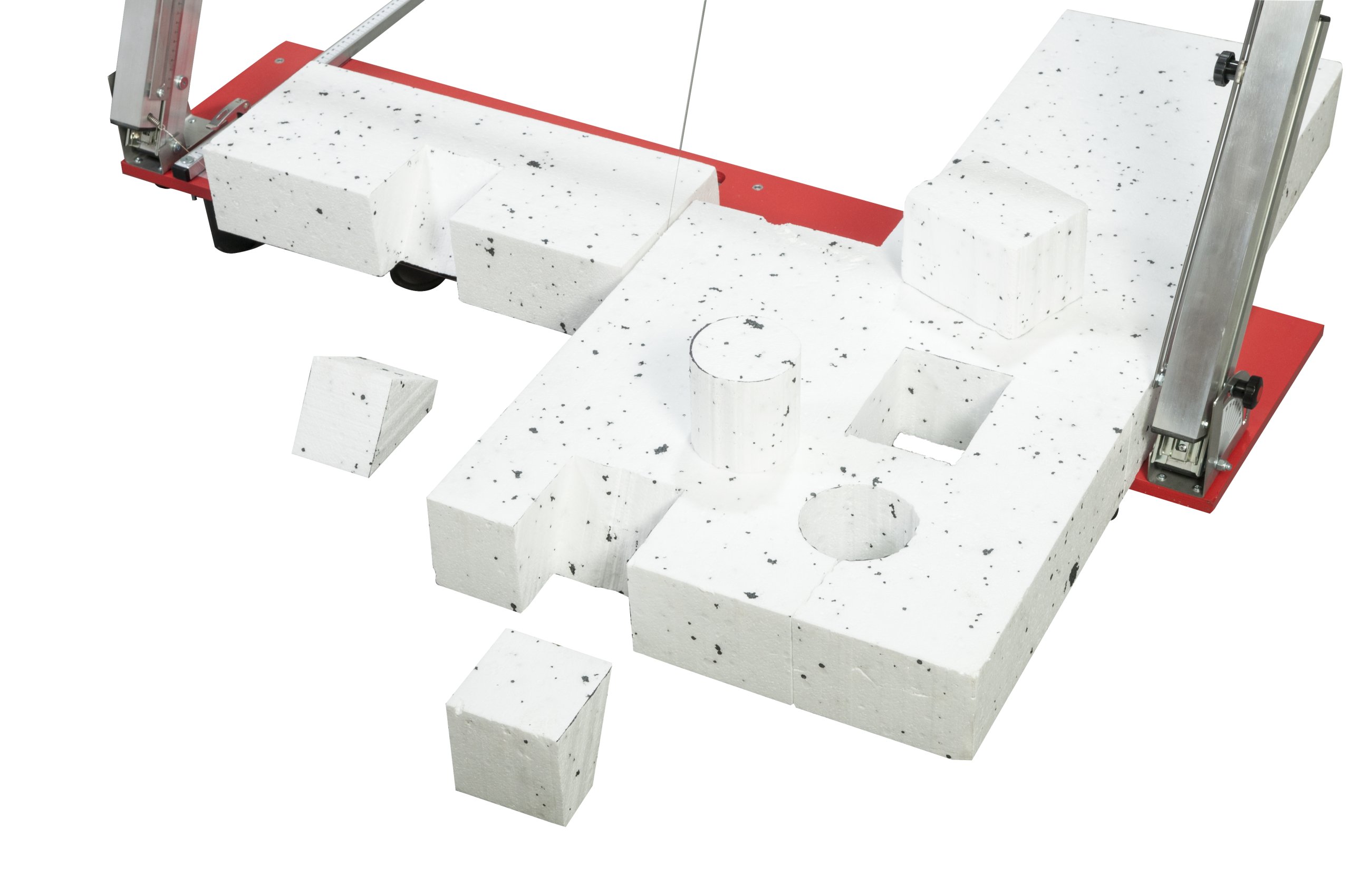 - Конструкція пристрою дозволяє точно розрізати пінополістирол і стиродур у трьох площинах.