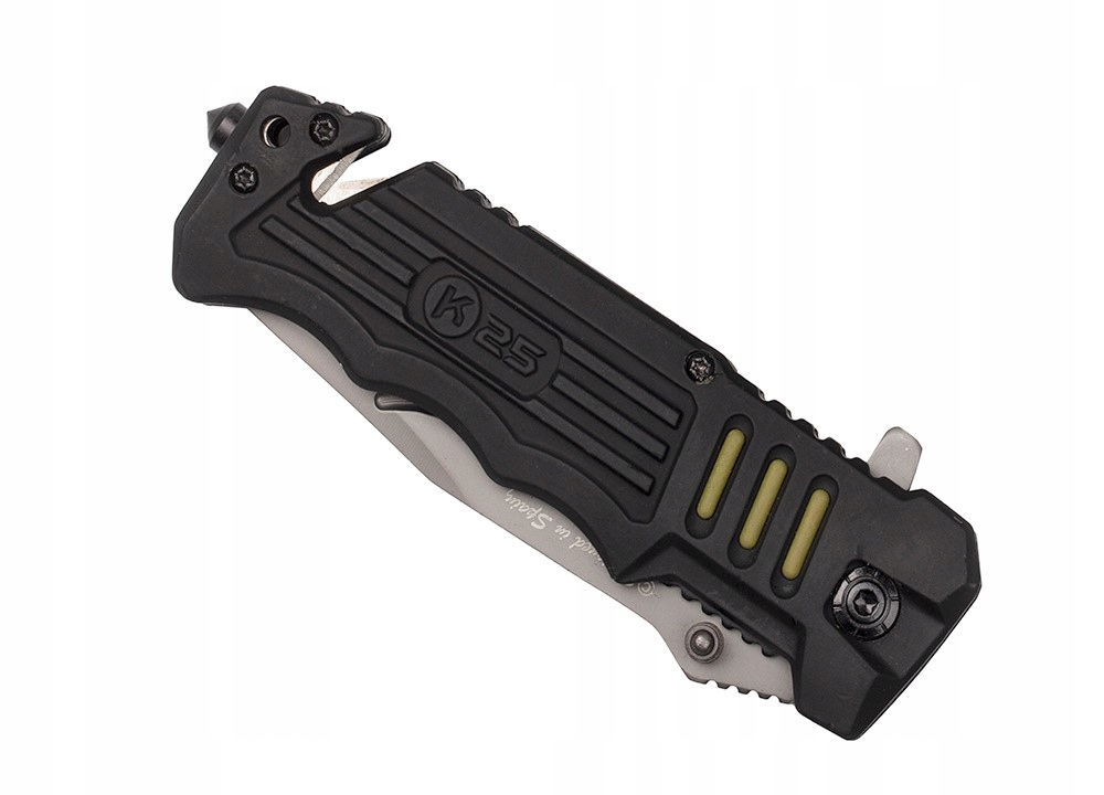 Надійний рятувальний ніж оснащено такими необхідними елементами, як: розбивач скла та безпечне лезо для розрізання ременів і мотузок b>.
