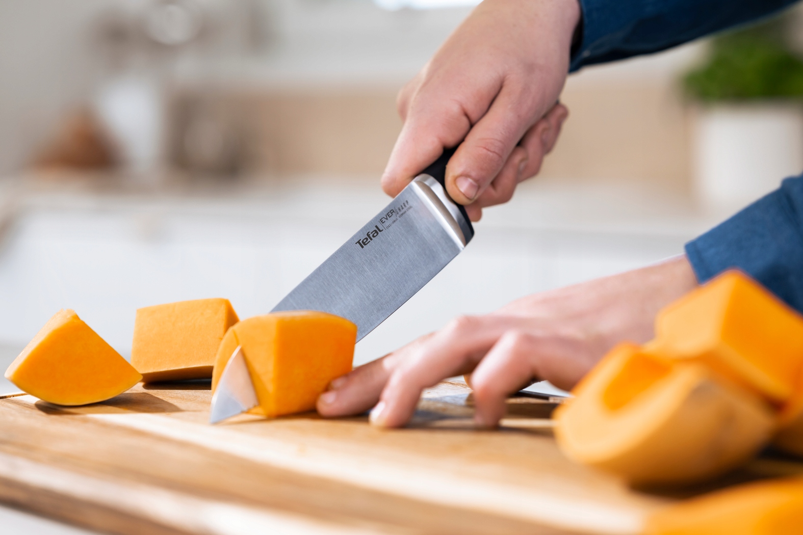 Завжди насолоджуйтеся ідеально заточеним ножем завдяки вбудованій точилці, яка автоматично заточує край під потрібним кутом до та після кожного використання. З ножем TEFAL EverSharp щоденне нарізання овочів, фруктів і м’яса стає легким і точним.
