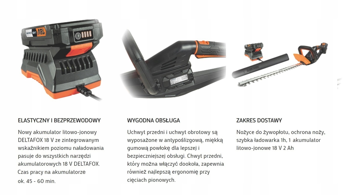 Акумуляторні ножиці для живої огорожі DELTAFOX 18 В DG-CHT 1815 - 2 акумулятори та зарядний пристрій