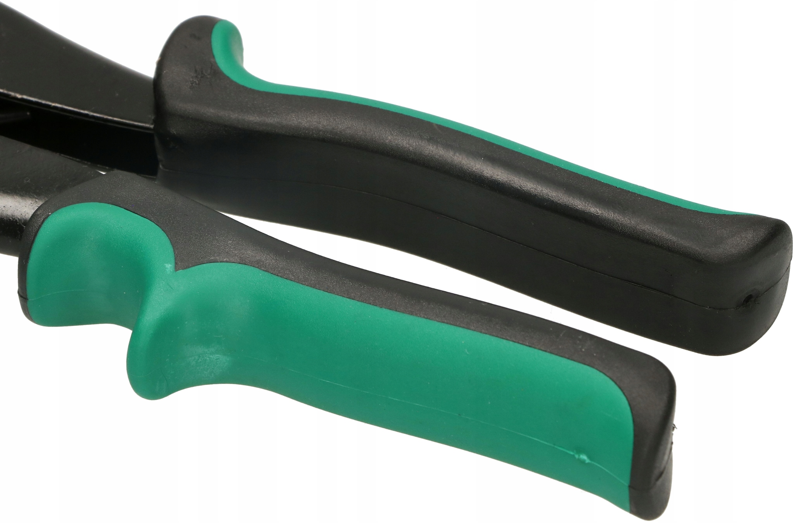 - Ножиці мають делікатно зубчасті леза, що запобігає руху інструменту назад під час різання листового металу.