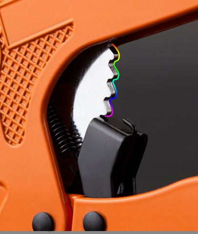 Ріжуче лезо в цих ножицях виготовлено з МАРГАНІКОВОЇ сталі, яка характеризується міцністю та стійкістю до механічних пошкоджень і корозії.