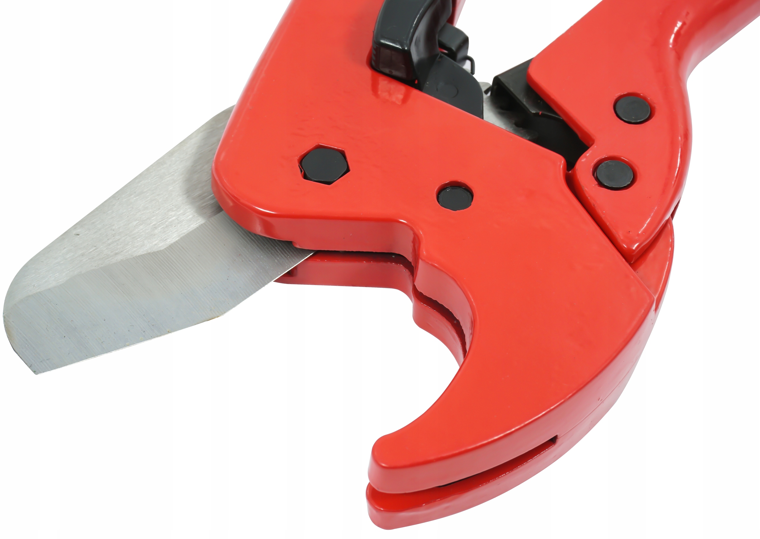 Професійні ножиці з храповим механізмом призначені для ефективного різання пластикових труб діаметром до 42 мм. Точно виготовлений храповий механізм і правильна форма леза дозволяють різати без пошкодження стінок.