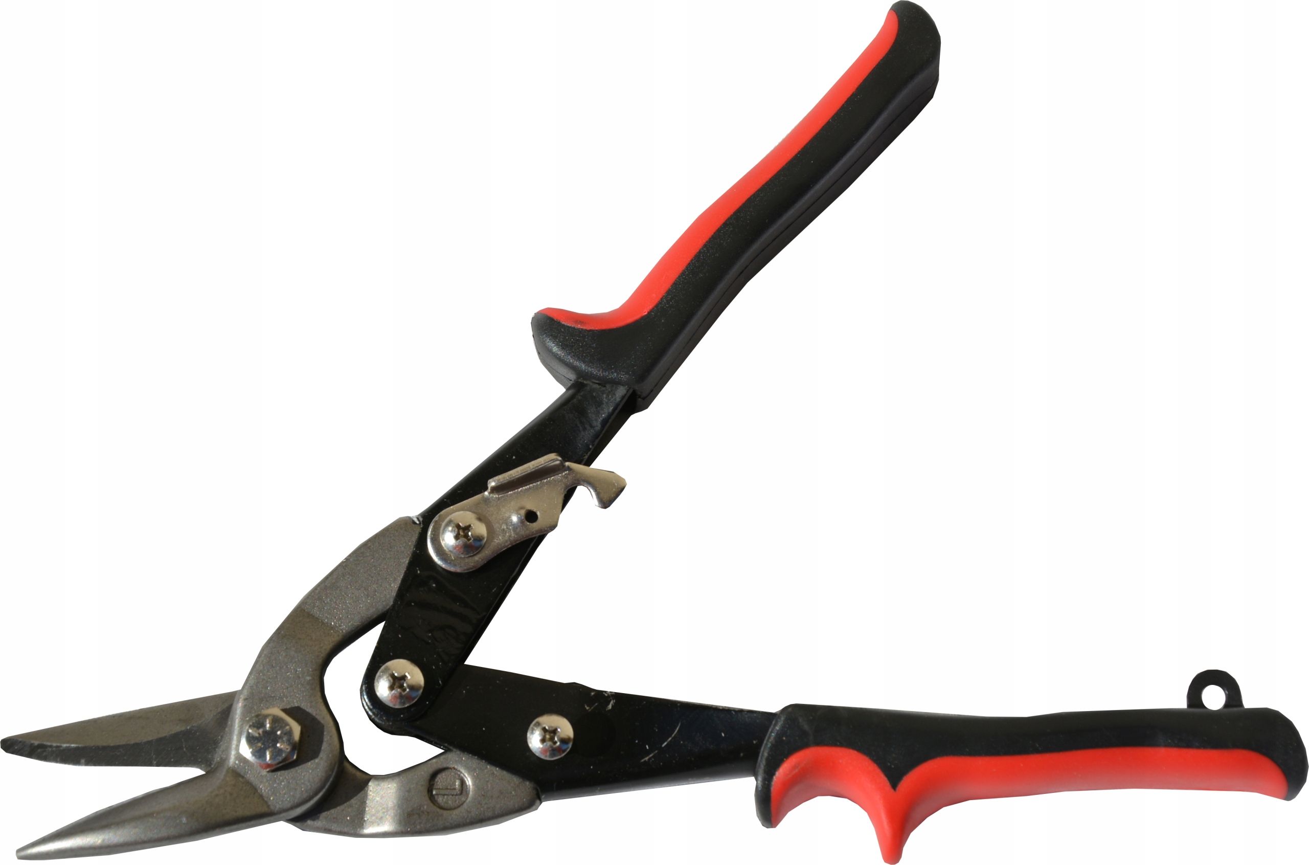 Листи для різання листового металу , суцільні леза ножиць, додатково зубчасті, що запобігає зісковзуванню з розрізаного матеріалу. Ергономічна ручка забезпечує надійний і зручний хват інструменту. Ножиці мають механізм фіксації в закритому положенні. Спеціально розроблені ручки з місцем для вказівного пальця та гачка.