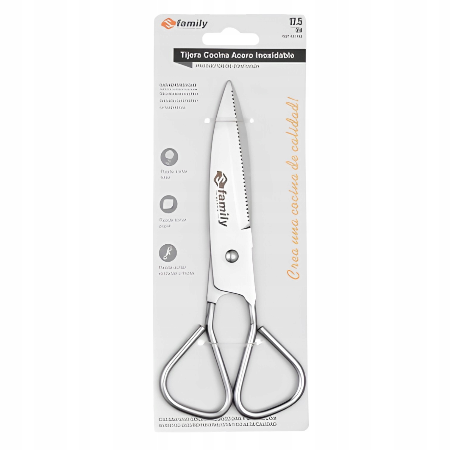 Ножиці, виготовлені повністю з нержавіючої сталі, довжиною 17,5 см, є надійним і багатофункціональним інструментом, ідеальним для домашнього, офісного та ручного використання. Їхні точні леза забезпечують чисте різання різних матеріалів.