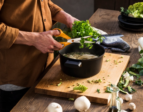 Компанія Fiskars почала своє виробництво в 1649 році. Сьогодні це одна з найстаріших європейських фабрик. Розробка нових методів обробки сталі підвищила ефективність виробництва Fiskars і розширила асортимент продукції. Була заснована перша фабрика з виготовлення металевих пружин у Фінляндії. У 1967 році, коли збиралися випустити перші базові моделі, оператор вирішив використати помаранчевий колір машини. Завдяки цьому прототипи були виготовлені в чотирьох різних кольорах, але найпопулярнішими виявилися помаранчевий і чорний. Компанія провела внутрішнє голосування, в результаті якого найбільше визнання отримав помаранчевий колір. Так народилися ножиці Fiskars з помаранчевими ручками. Колір Fiskars Orange® був зареєстрований як офіційна торгова марка в 2003 році у Фінляндії та в 2007 році в США. Інструменти Fiskars виграли, серед іншого, нагороди Red Dot, Good Design, Green Design у категорії популярної механіки та нагороди за простоту використання. Сьогодні виробництво розширено за рахунок різних типів ножів. Кожен знайде щось для себе. Вироби виготовлені з матеріалів найвищої якості з особливою ретельністю.