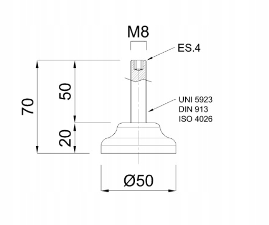 НОЖКА ВИРІВНЮВАННЯ FI50 M8x50 ПОЛІАМІД/ІНОКС