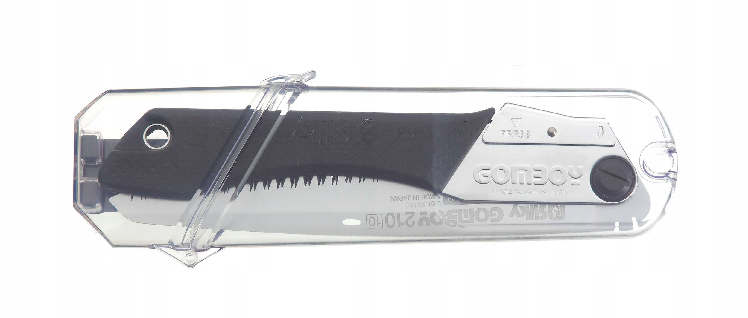 Полотно пили можна легко та безпечно зафіксувати у двох положеннях різання. У складеному стані зубці Гомбоя повністю заховані в ручці. Це дозволяє зберігати пилку в рюкзаку.