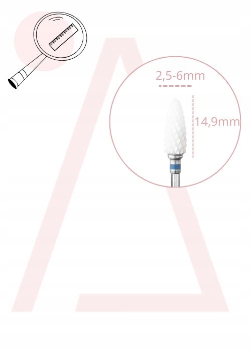 Його конічна «конусна» форма та середня градація роблять його ідеальним для видалення гелю, акрилу та гібридів без ризику спилювання натуральної нігтьової пластини.