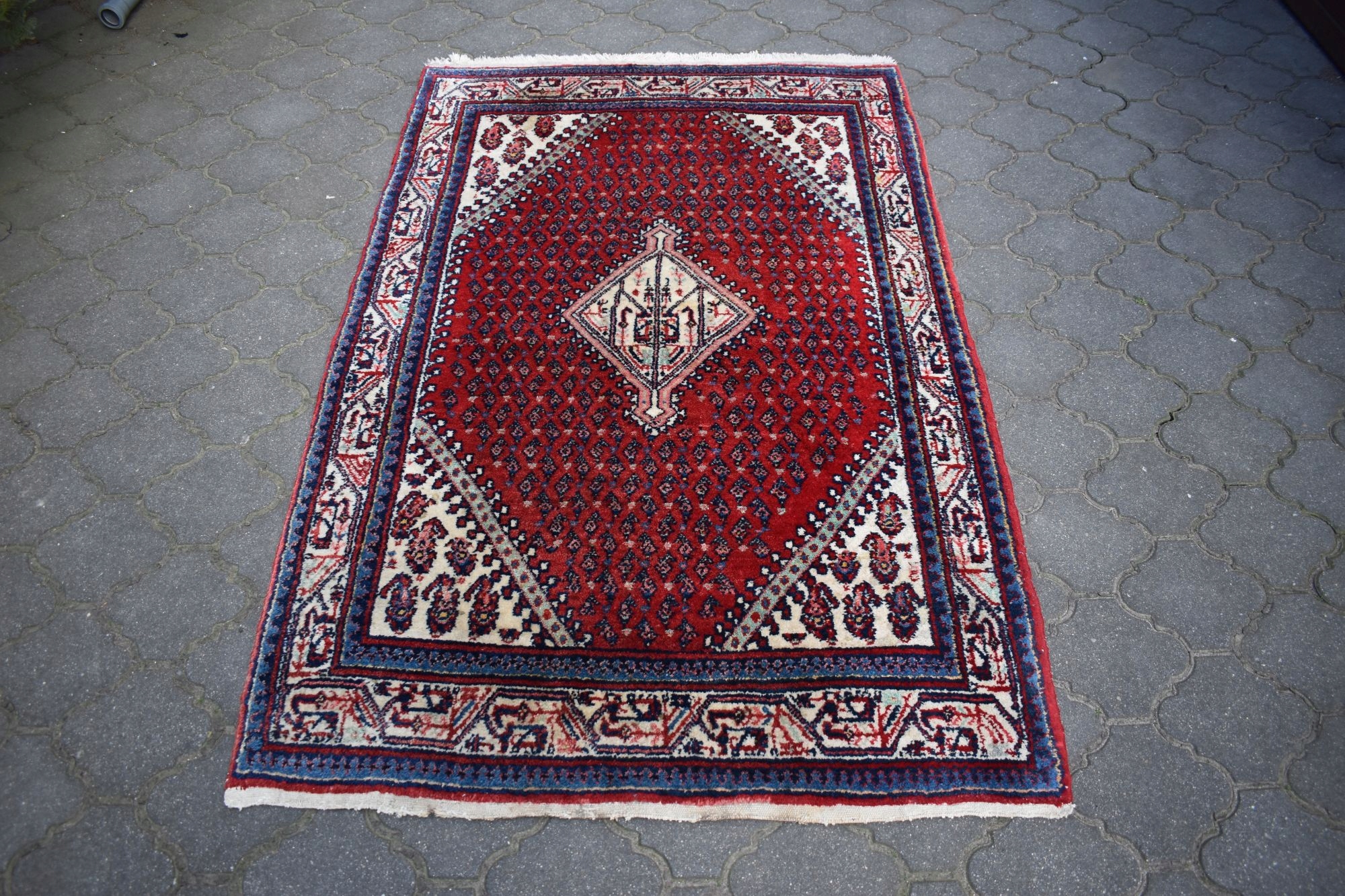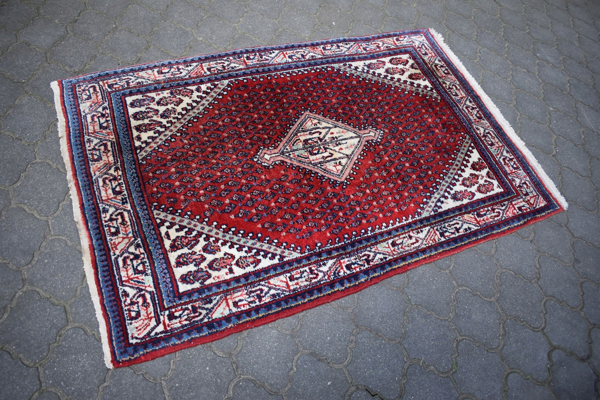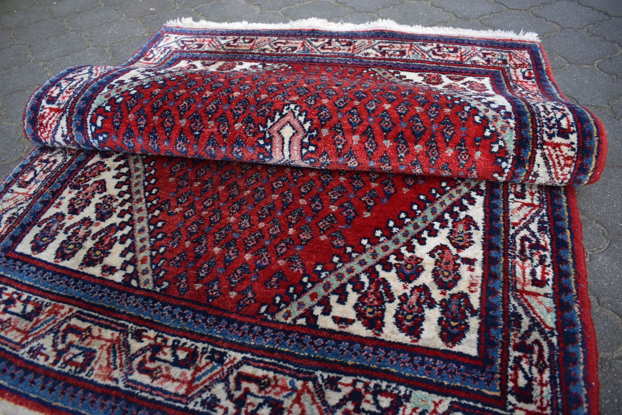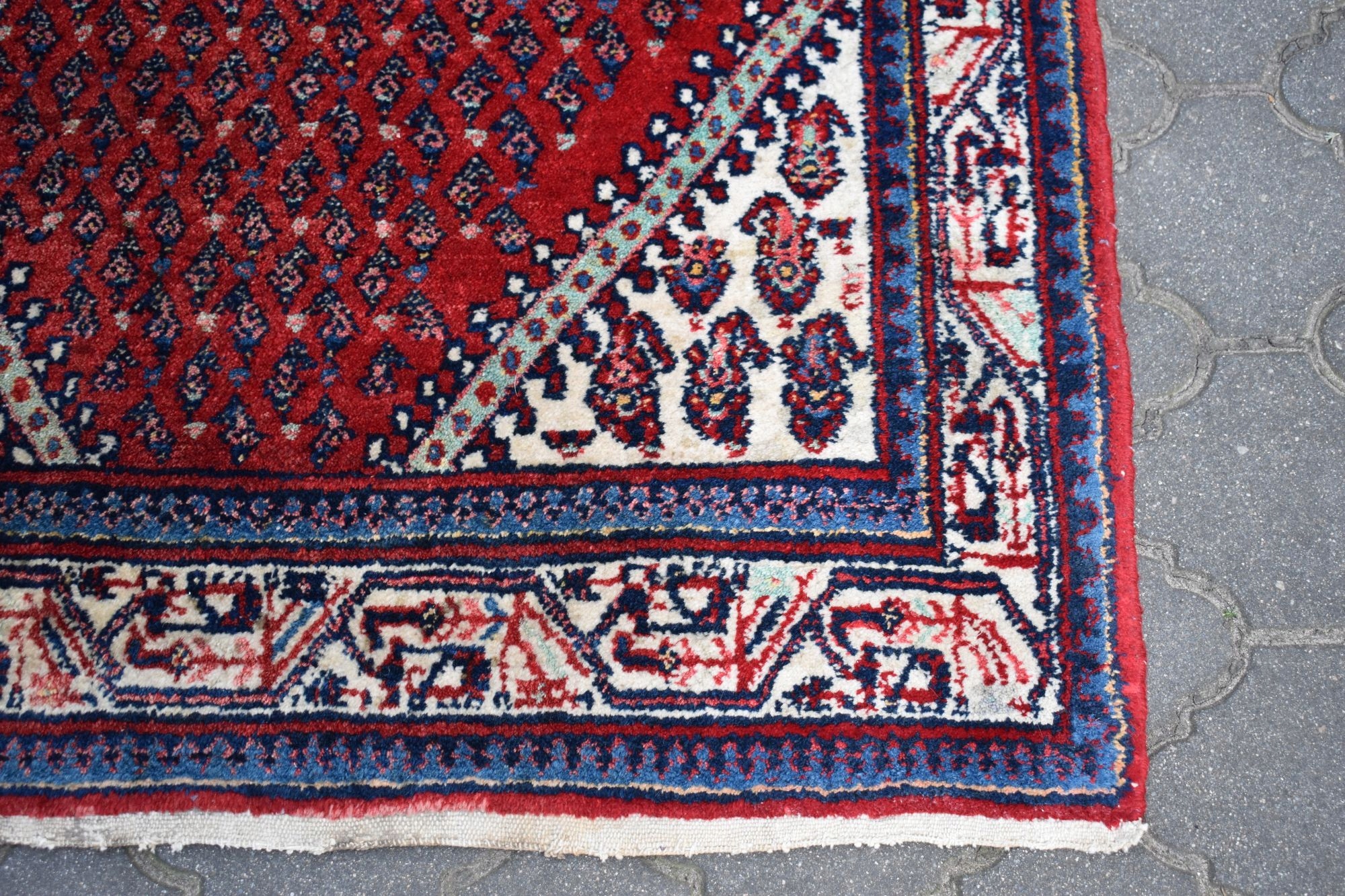 адвокат експертів. З одного боку, килим спочатку був закінчений переплетенням вузла, з іншого з бахромою.