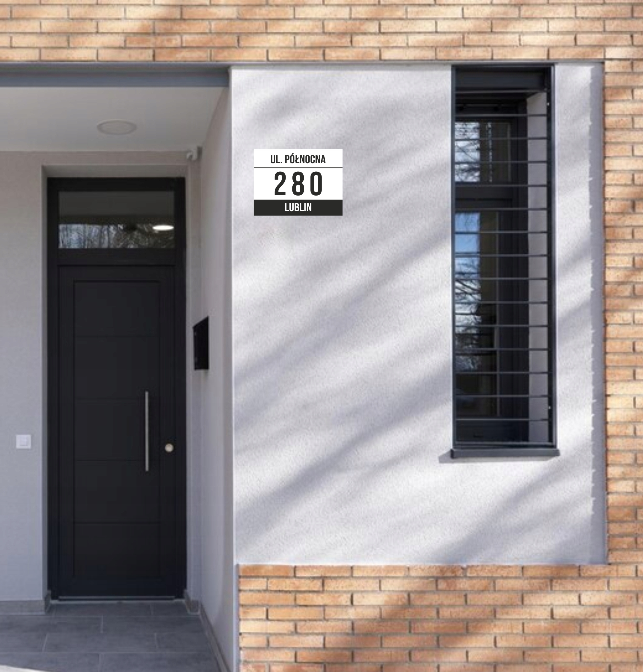 Адресна табличка з номером будинку та назвою вулиці або 30х40 см. Ця нумерація допомагає державним службам, таким як пошта, поліція чи пожежна команда, у швидкому та точному місці заданого об'єкта. Завдяки цьому, постачальники послуг та гості легше знаходять адреси.