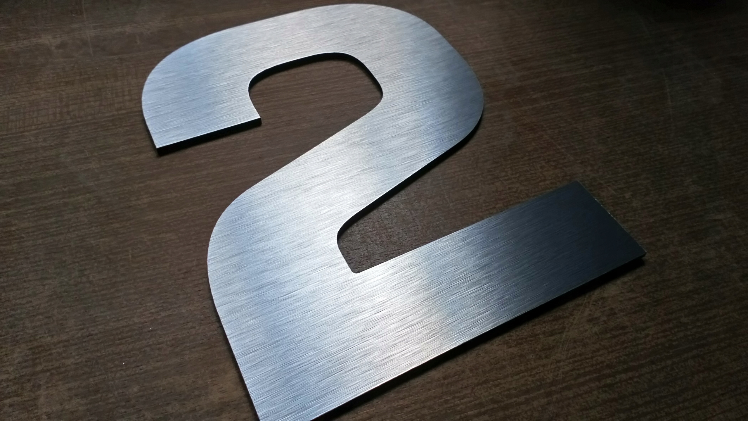 Літери та цифри вирізані з композитної плити DIBOND товщиною 3 мм. Це матеріал, що складається з двох шарів алюмінію та поліетилену, стійкий до погодних умов. Висота літери або цифри 30 см.