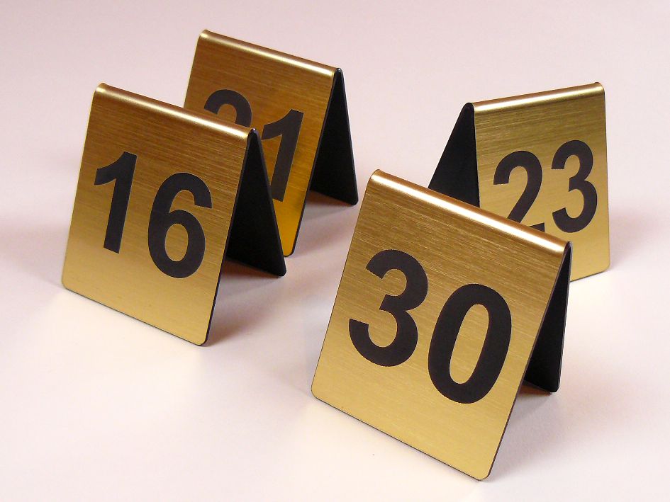 Номер столу виготовлено з гравірованого ламінату товщиною 1,6 мм.