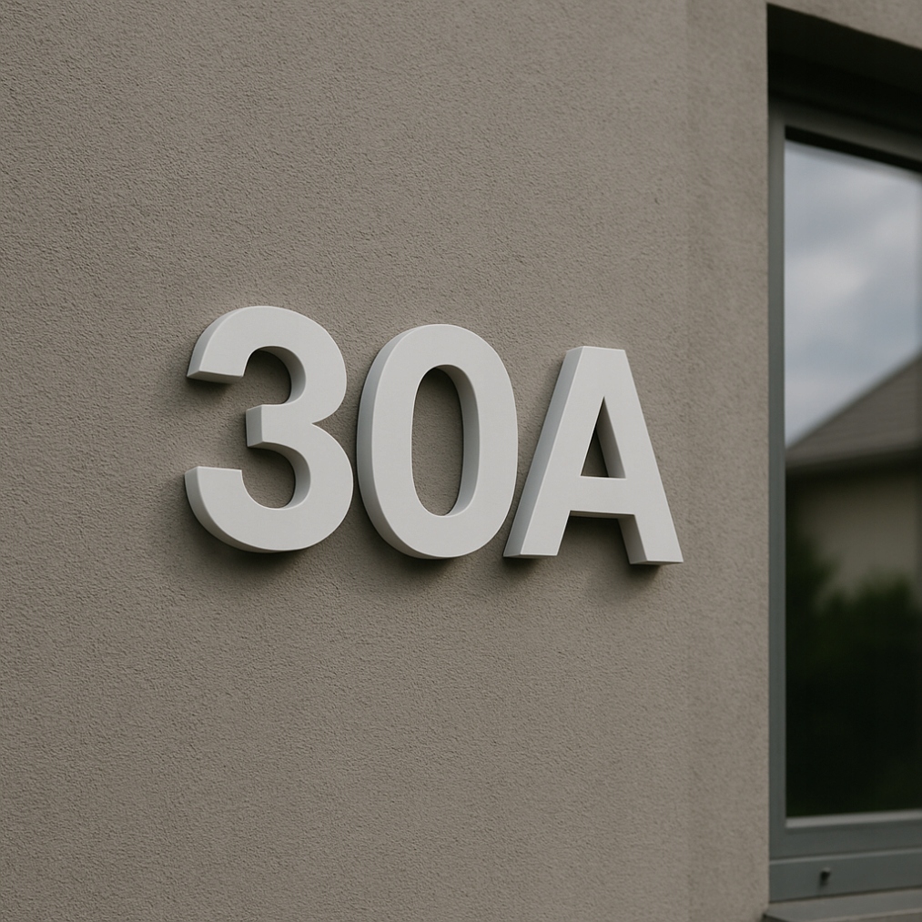 Сучасне та ефективне позначення вашого будинку, квартири чи паркану. Цифри та 3D букви, виготовлені з високоякісного стиродуру XPS, машинного фрезерування.