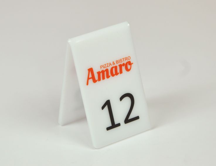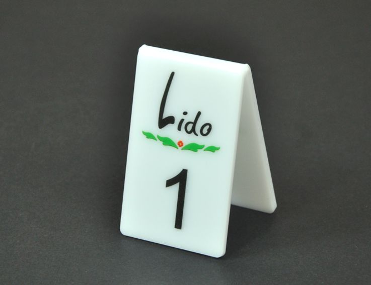 V-подібні номери столу виготовлені з оргскла молочного кольору.