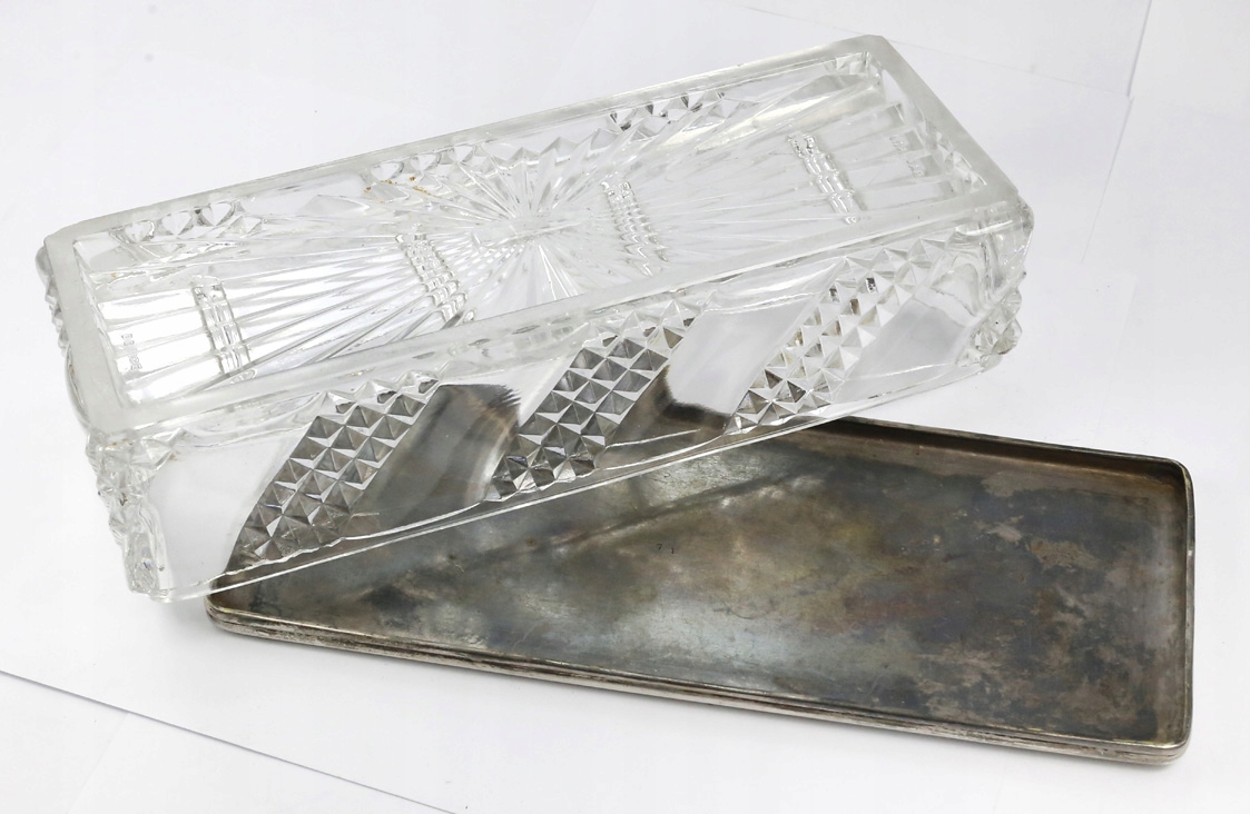 оригінальний надзвичайно красивий b. Рідкісна велика довоєнна коробка з Гейшею, Норблін Варшава, Каталог № 3609, близько 1910 року, нижня скляна частина, позначена написом: баккарат депози; Срібна металева кришка, красиво оформлена, японським мотивом; Ціле твердо виготовлений, досить важкий, розмір: 22 х 8,5 х 5,5 см. Дуже хороший стан-цілий покритий ніжною патиною. Надзвичайно цікавий рідкісний оригінальний об’єкт. Рекомендую, оригінальний рідкісний предмет за доступною ціною. Надзвичайно цікавий рідкісний оригінальний об’єкт. Умова ідеально видно на знімках на описі аукціону.