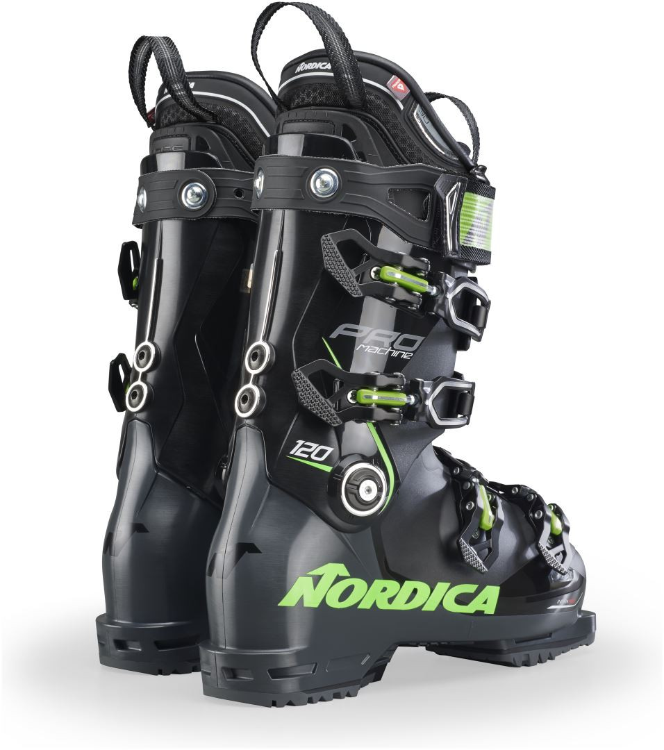 Nordica Pro Machine 120 GW Black/anthracite/Green 2022/23 комфорт. На додаток до трохи м'якшого гнучкості, ніж Pomachine 130, 120 також використовує Primaloft в підкладці, щоб забезпечити оптимальне тепло та м'якість, що робить його ідеальним для лижників, які шукають трохи більш прощаючого взуття. Завдяки більш жорсткому пластику вздовж хребта оболонки взуття пропонує багато бічної стабільності, що дозволяє чудово перенести енергію. Це в поєднанні з анатомічними 98 мм, остання оболонка та 3D -вставка, яка може бути додатково адаптована з інфрачервоним нагріванням, забезпечує неймовірно чуйні, точні повороти та велике відображення. Виберіть Pomachine 120, якщо ви шукаєте взуття, яке поєднує високу продуктивність з відмінним комфортом. Деталі: